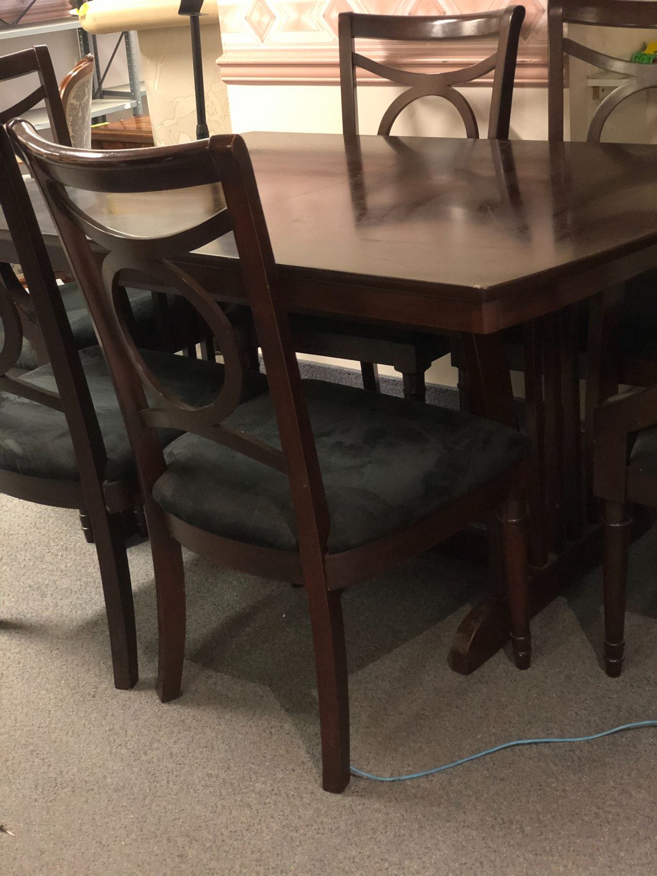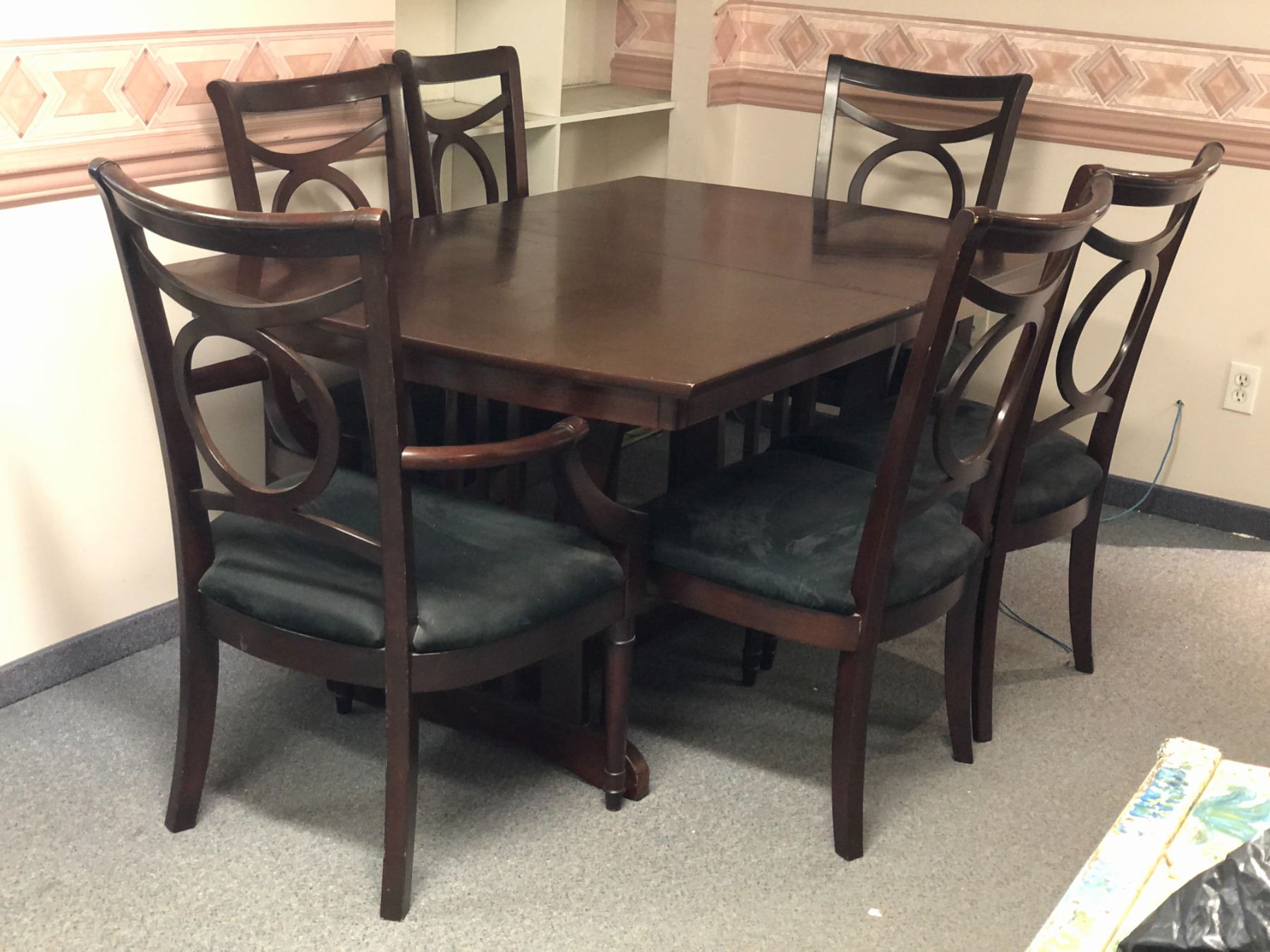 Large dining table w/6 chairs 60in W 40in D w/18in leaf