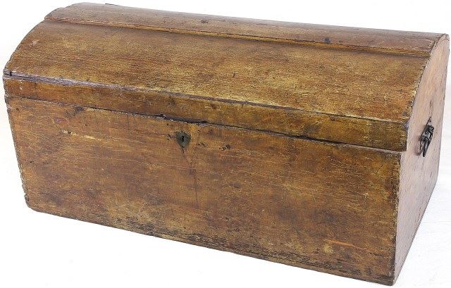 with early hand cut dovetail construction, original iron handles intact, 19" X 19" X 39". Est. 250-400