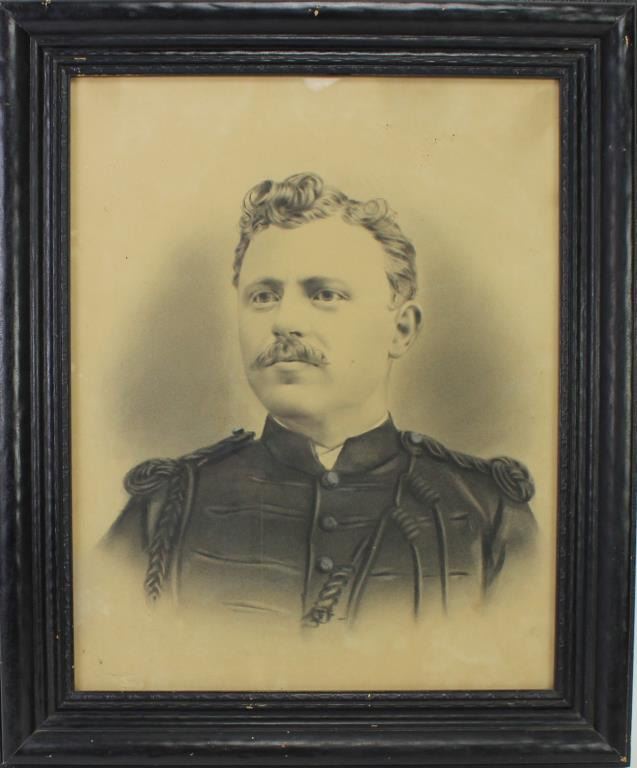 Large early portrait the back in pencil marked John Keysor member of the 7th Cavalry Sturgis SD. 1879. Original remains in very good condition, show Keysor in his uniform jacket, in it's original frame. Great image that warrants further investigation, 15 John Keysor member of the 7th Cavalry Sturgis SD. 1879. Original remains in very good condition, show Keysor in his uniform jacket, in it's original frame. Great image that warrants further investigation, 15" X 19".