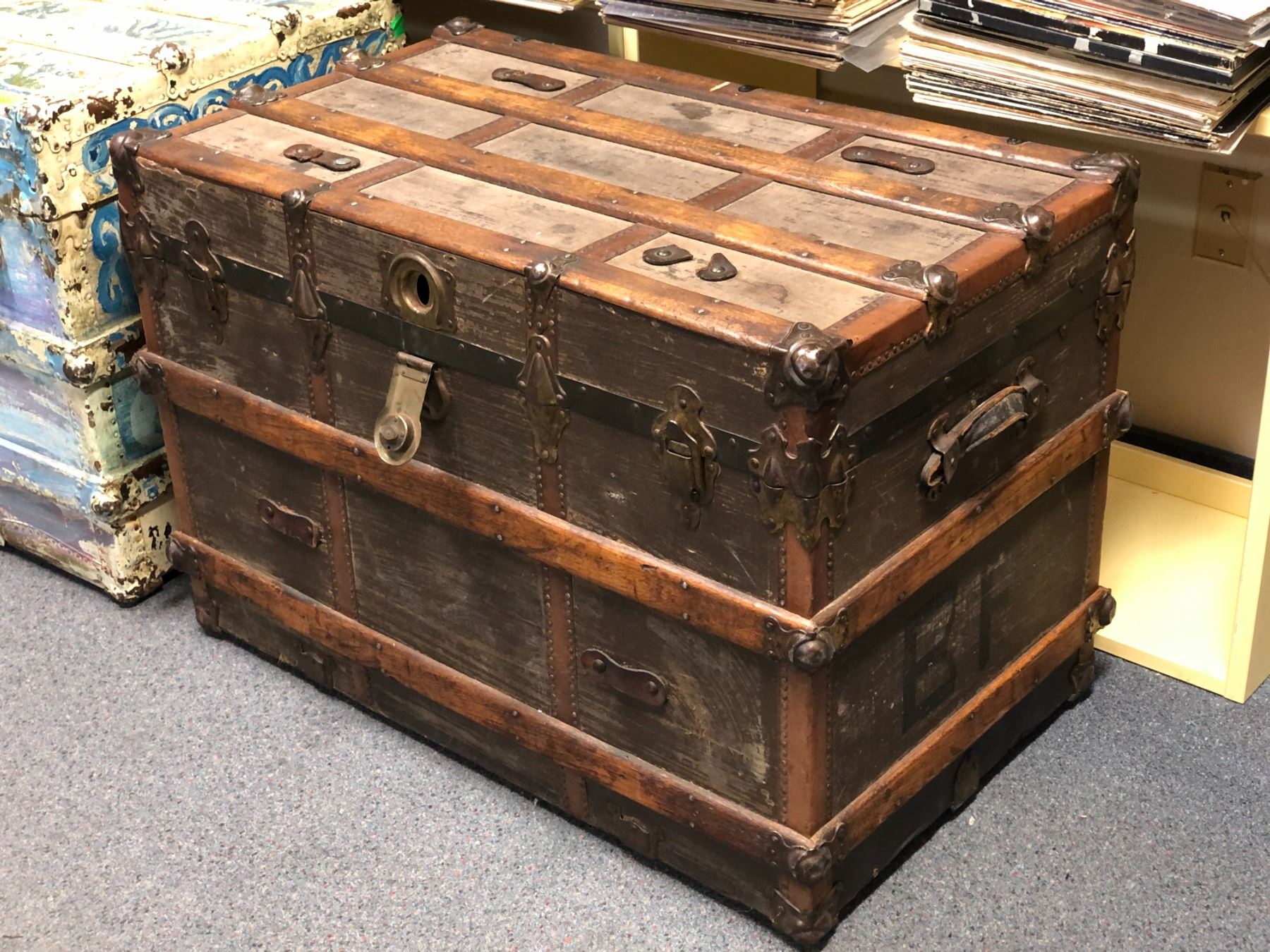 Large empty steamer trunk (brown)