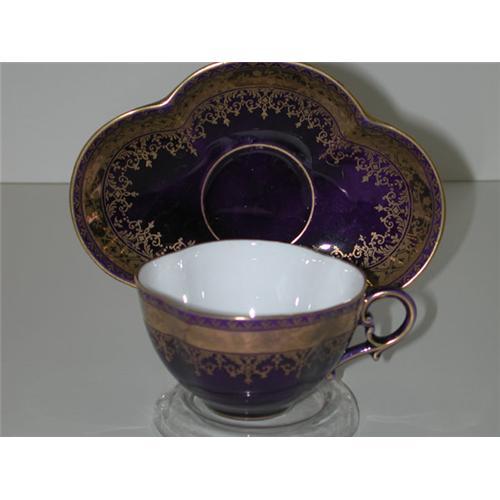 Cobalt blue with fancy gilt decoration cup and saucer.