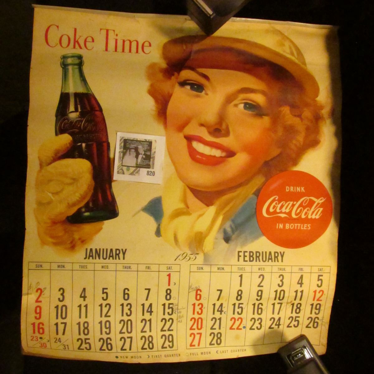 Large format 1955 Coca-Cola Calendar Girl Calendar. Some penciling on dates.