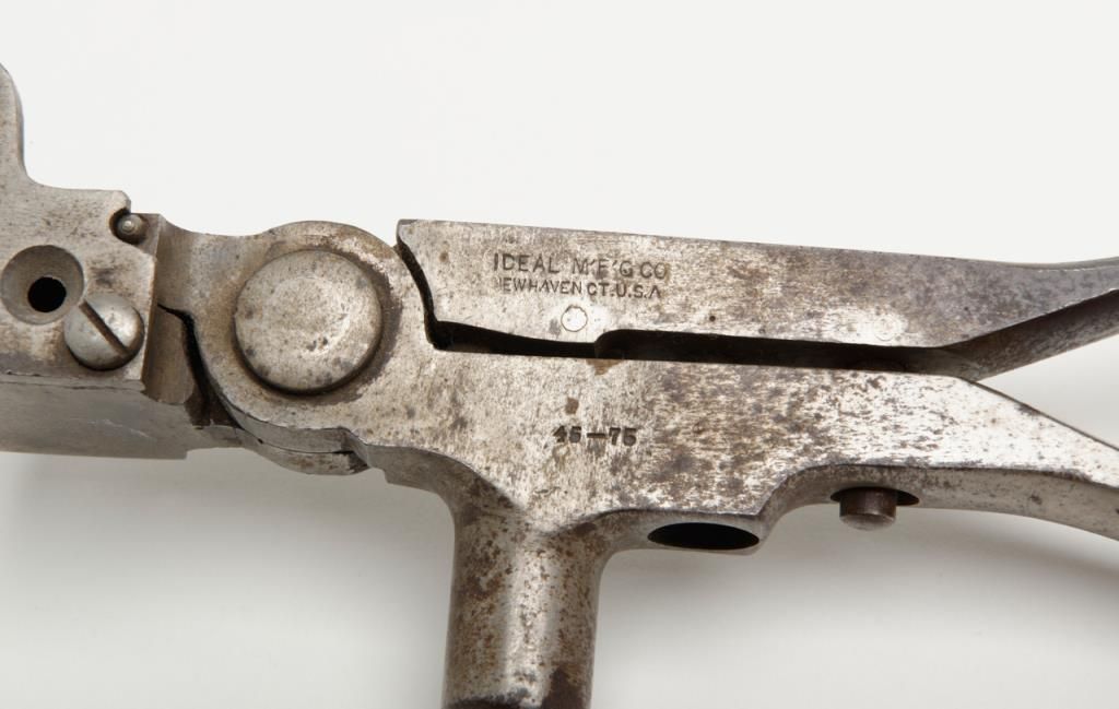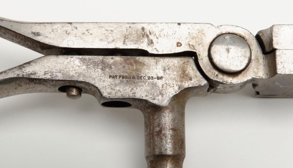 Large frame Ideal #6 combination bullet mold/loading tool for 1876 Winchester .45-75 caliber cartridge in overall un-cleaned good to very good condition; Patent date Feb. 11 & Dec. 23 - 84. Est.: $350-$450.