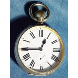 Large gentleman's silver plated pocket watch with enamel dial