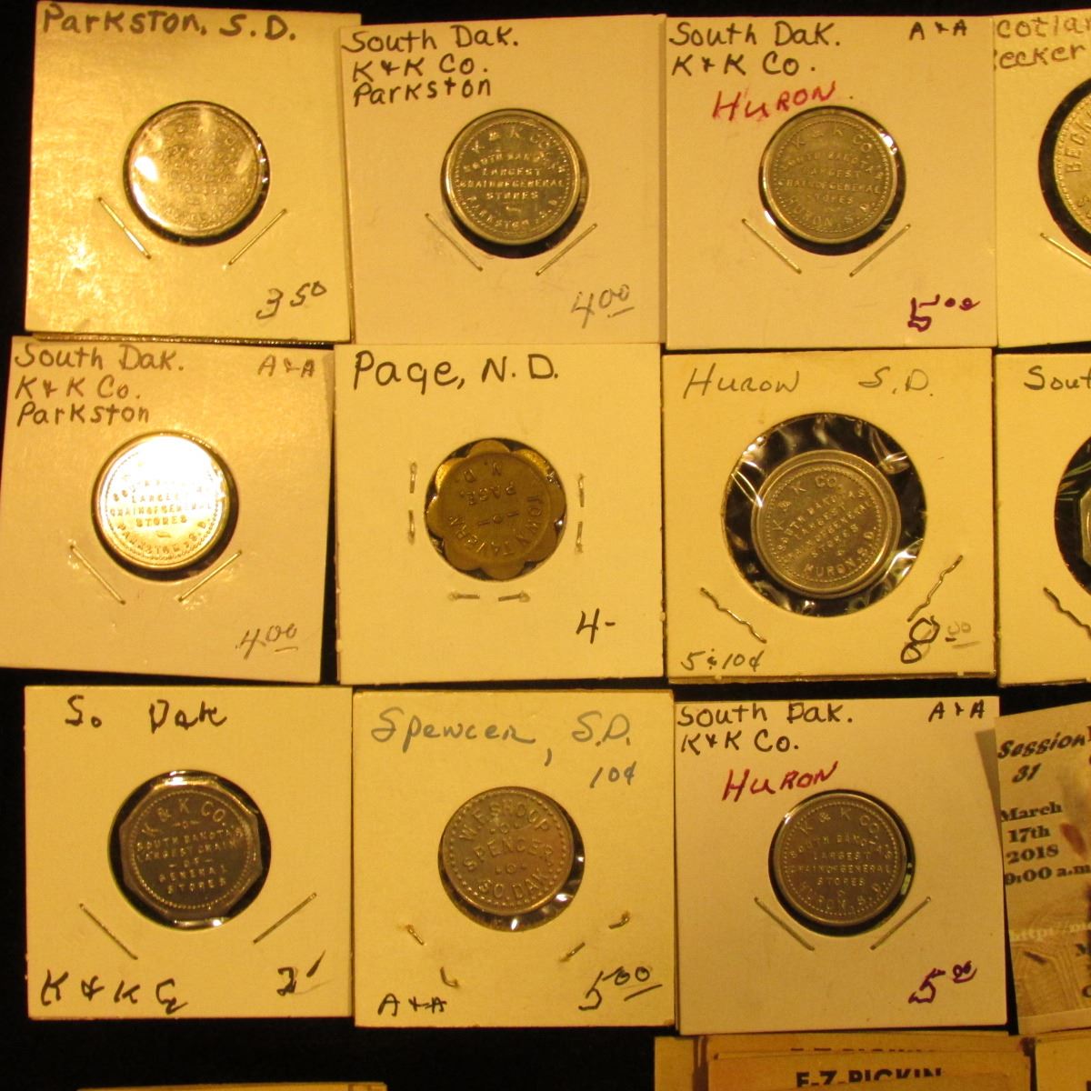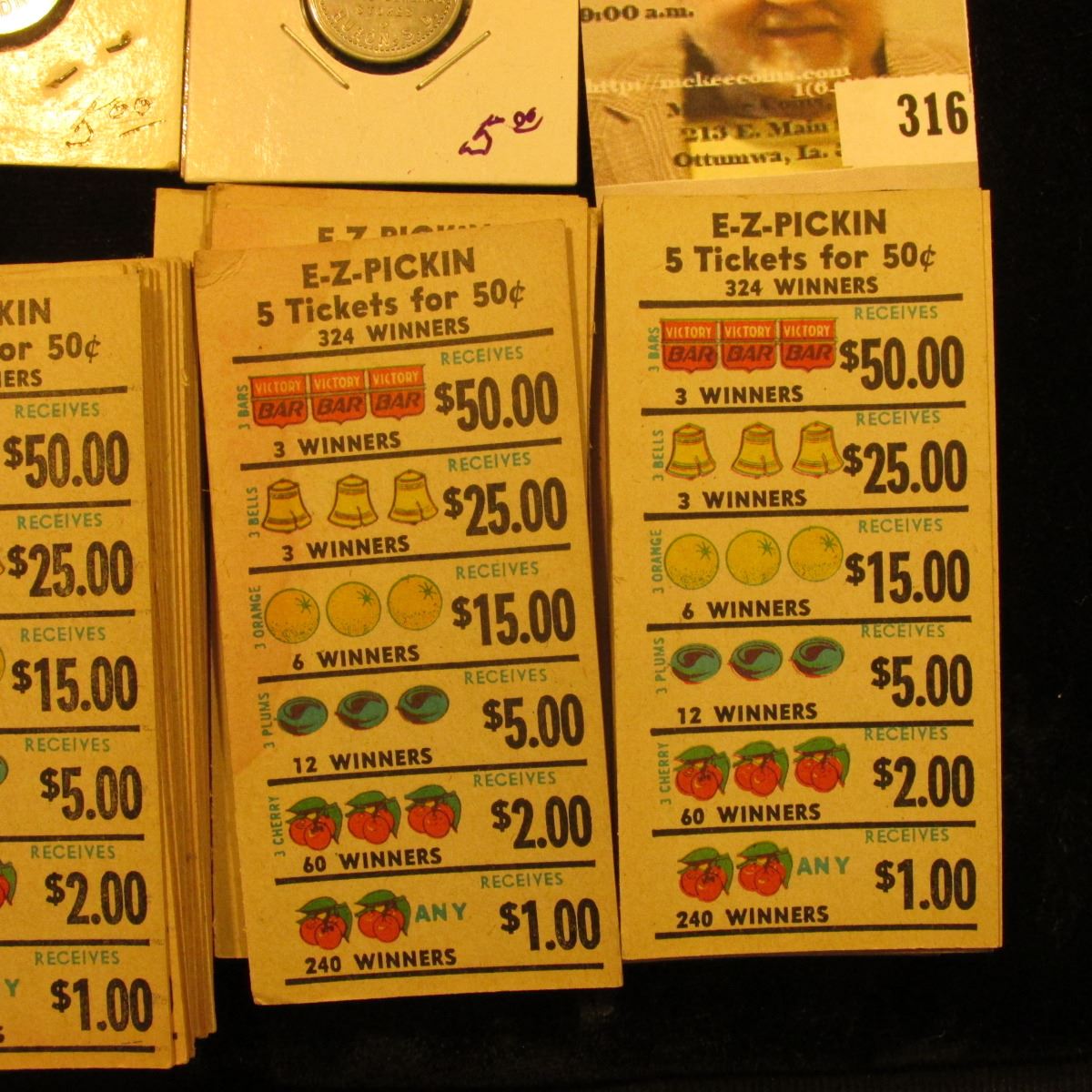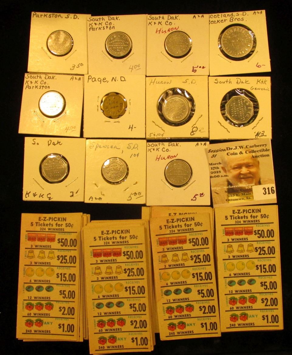 Large group of EZ Pickin Gambling Tickets; and a group of North & South Dakota Tokens.