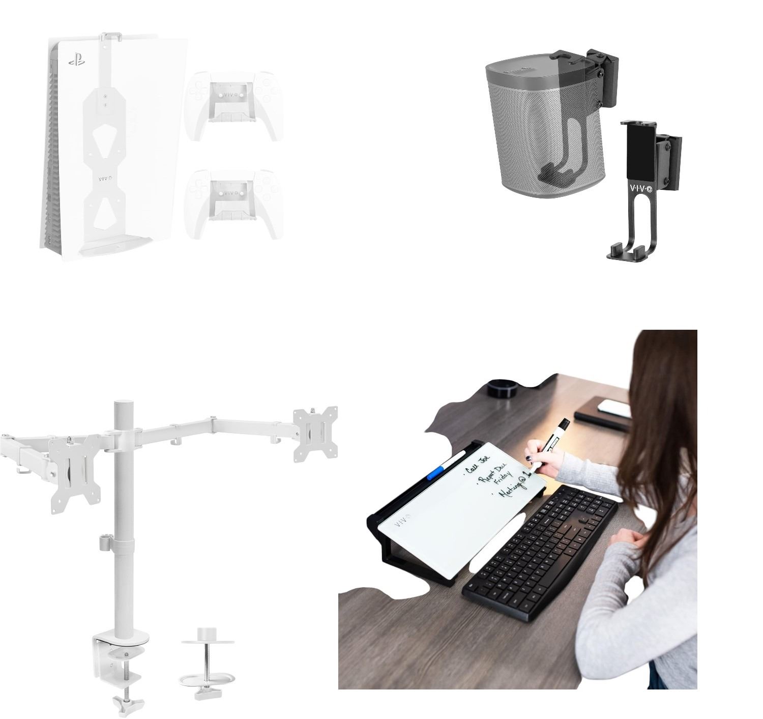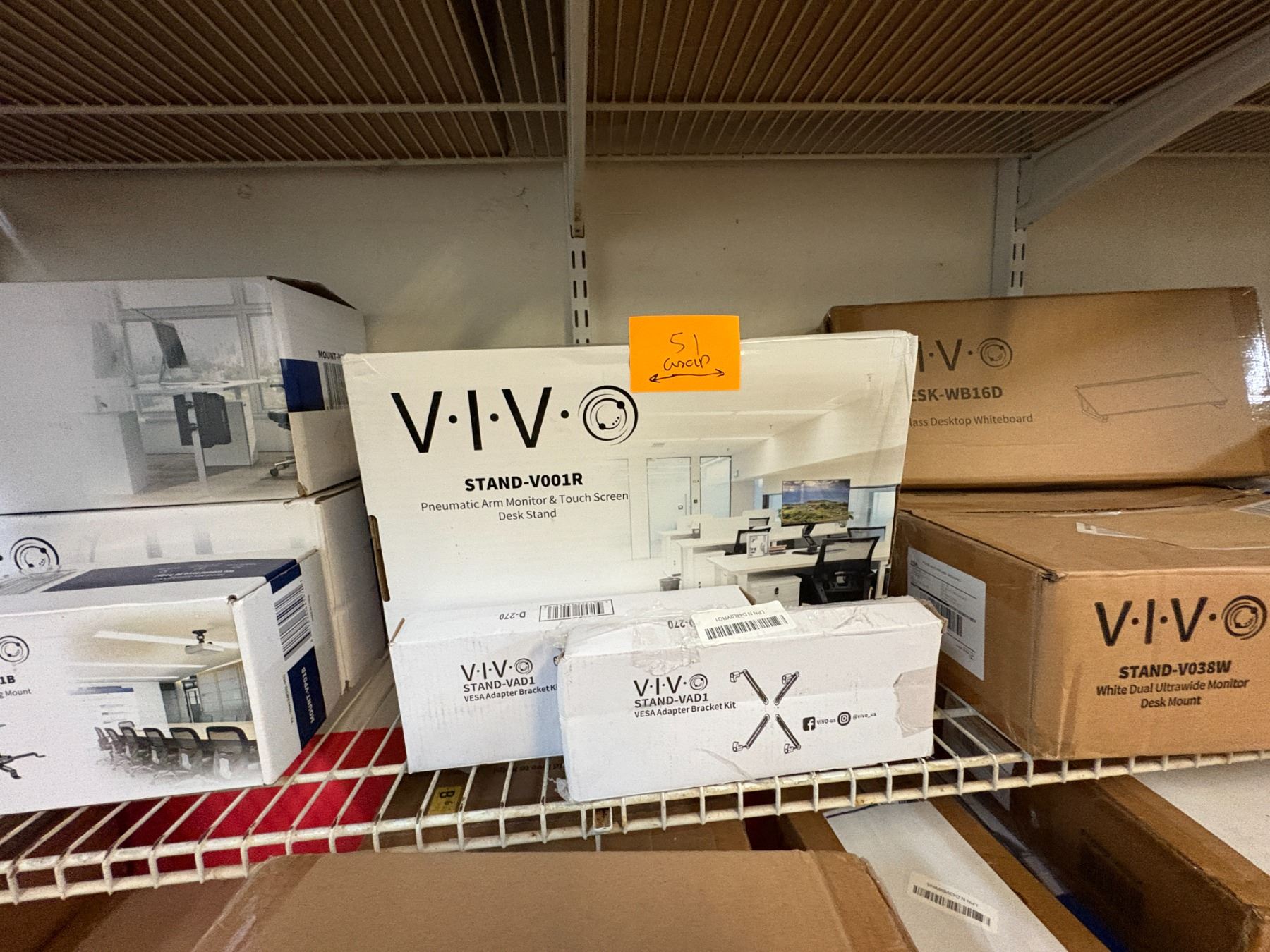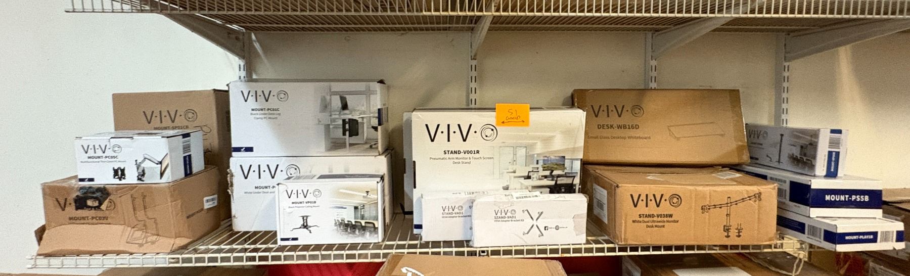 Large group of assorted VIVO mounts & accessories - black projector ceiling mount, ultrawide dual monitor etc. (approx. 15pcs) (refurbished in boxes)