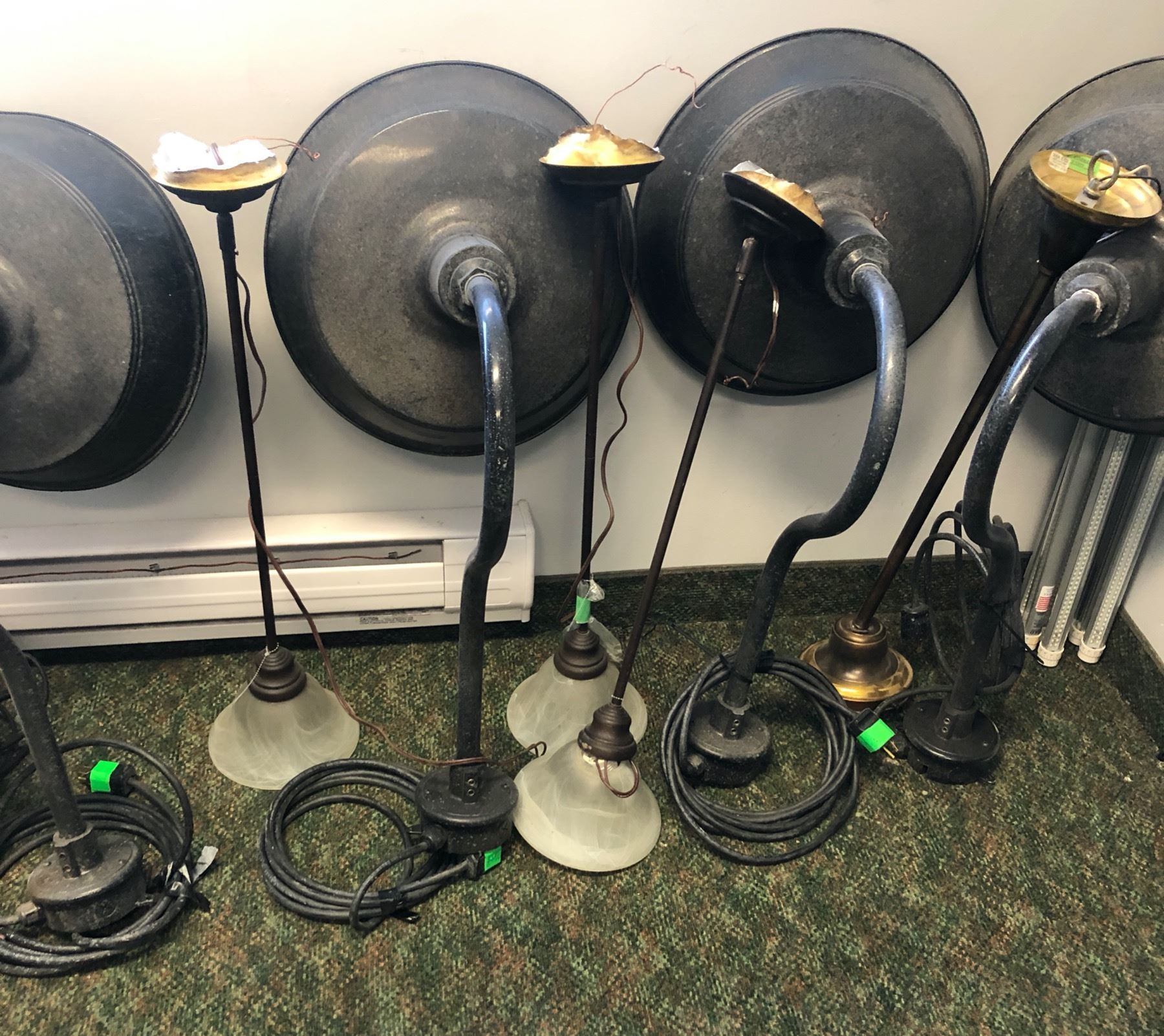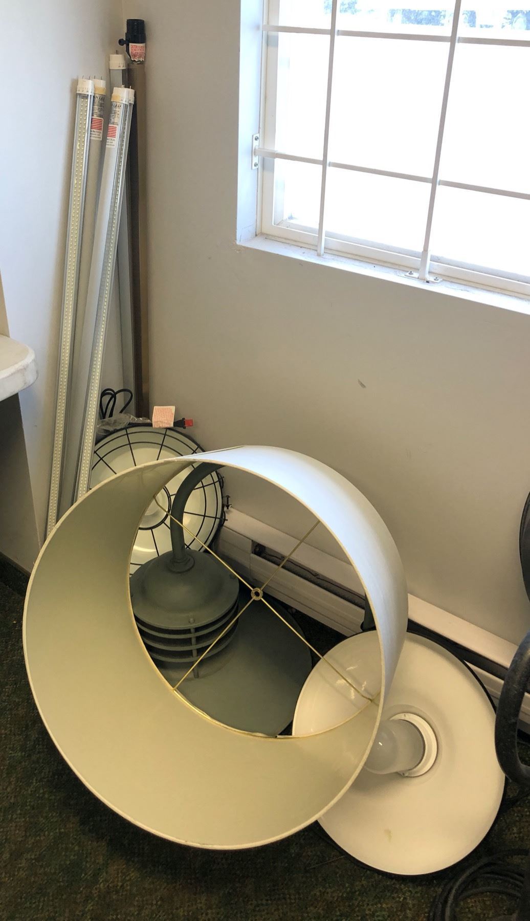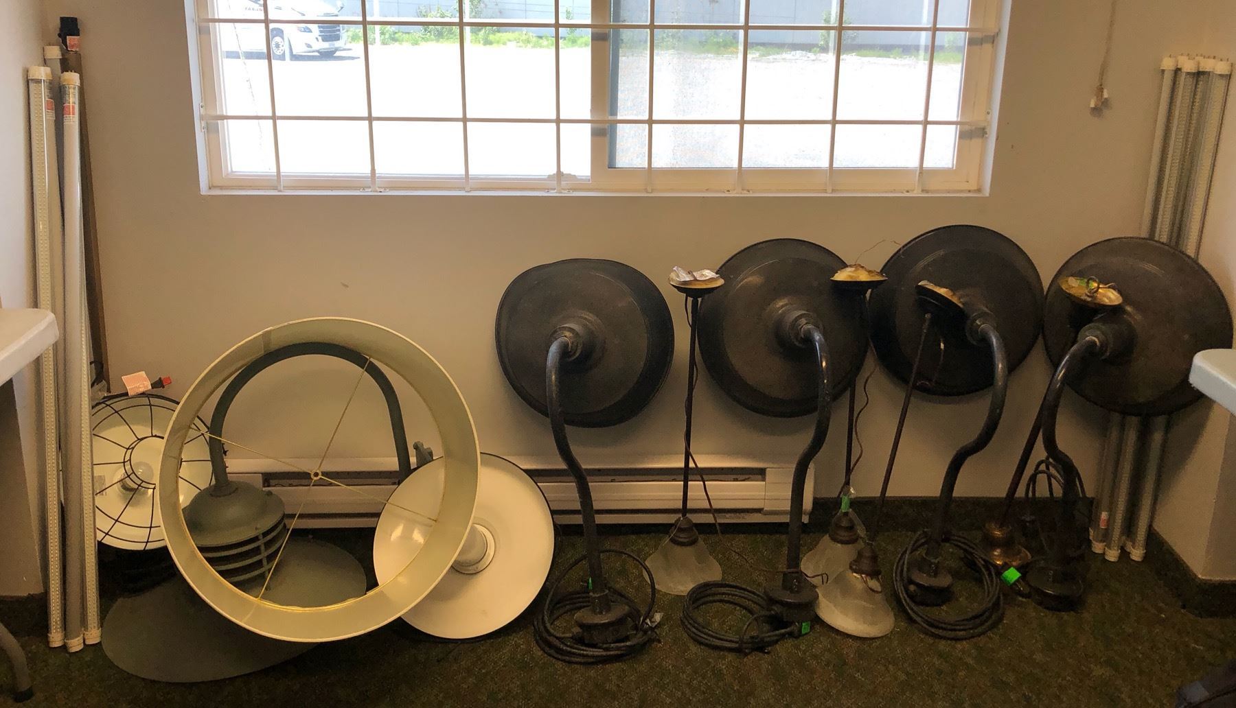 Large group of assorted light fixtures - includes ceiling lights/ wall-mount lights/ LED tube lights etc.