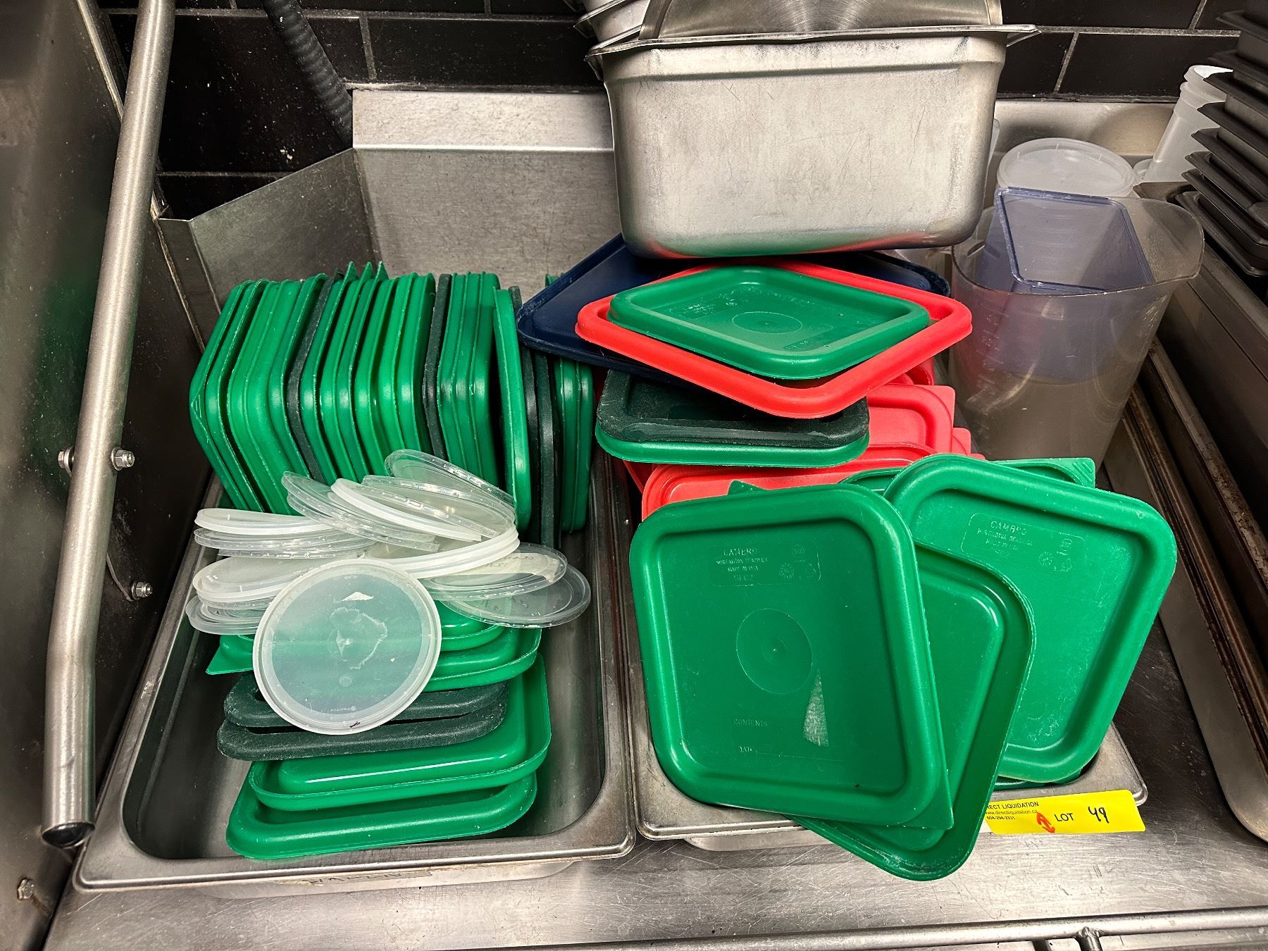 Large group of assorted stainless steel containers & plastic containers lids