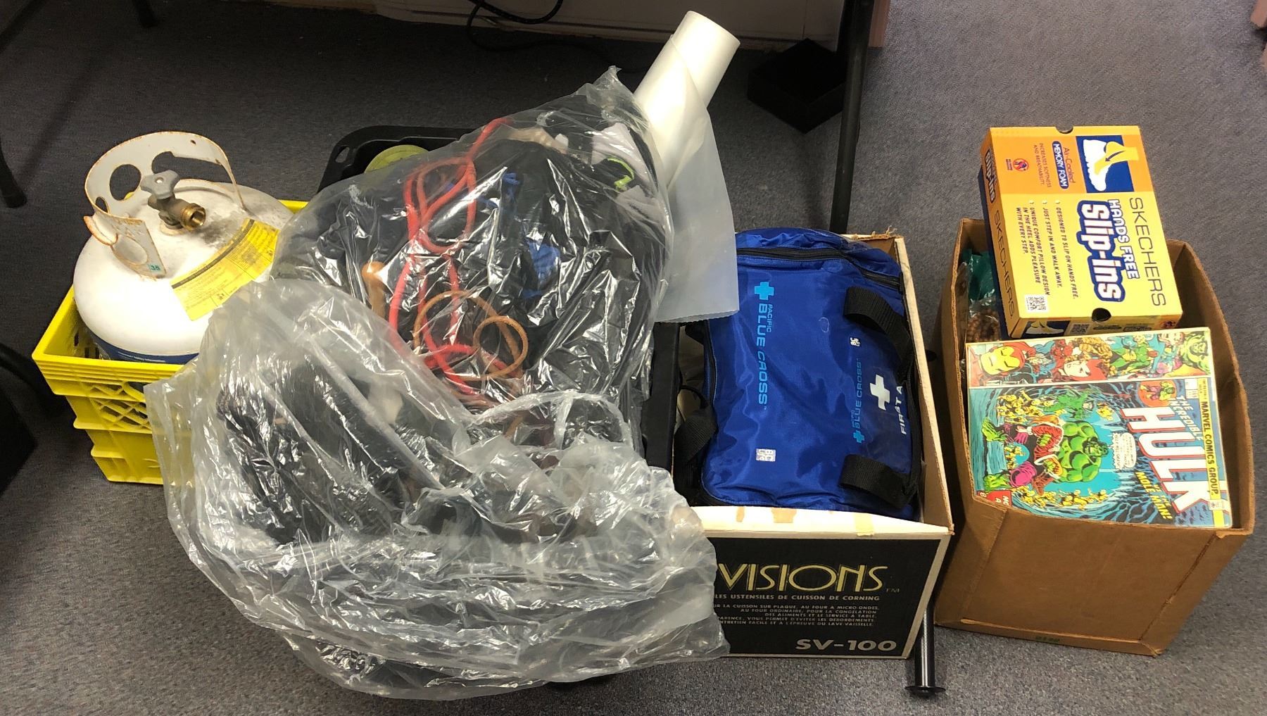 Large group of estate items - includes propane tank/ clothing/ large group of beads etc.