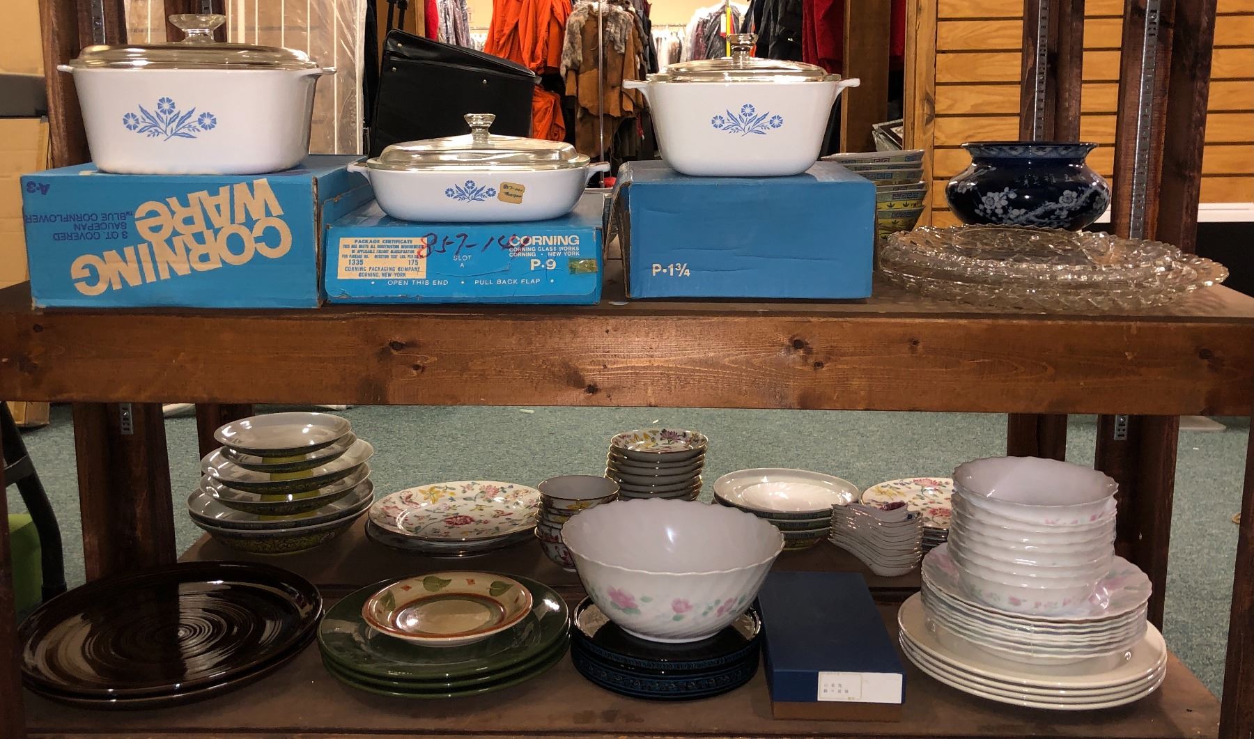 Large group of kitchenware - includes serving plates/bowls/corining ware etc.