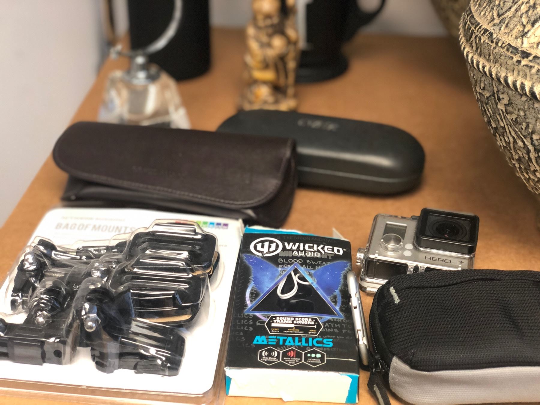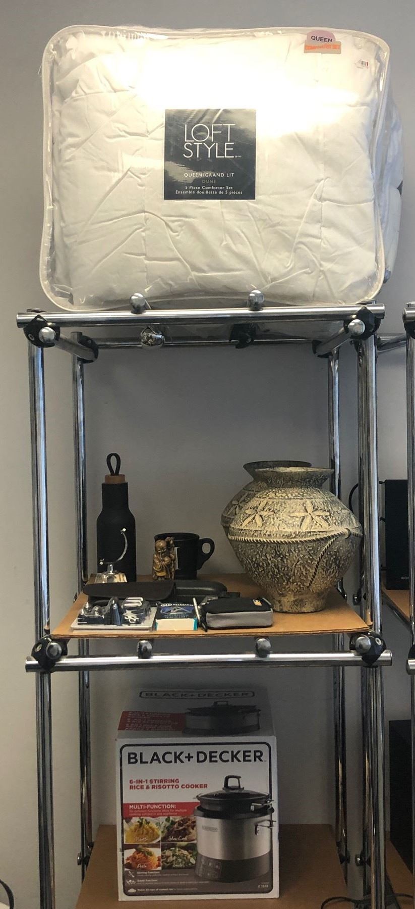 Large group of misc. items - includes Black+Decker rice cooker, vases, GoPro camera, Loft style Queen comforter etc.
