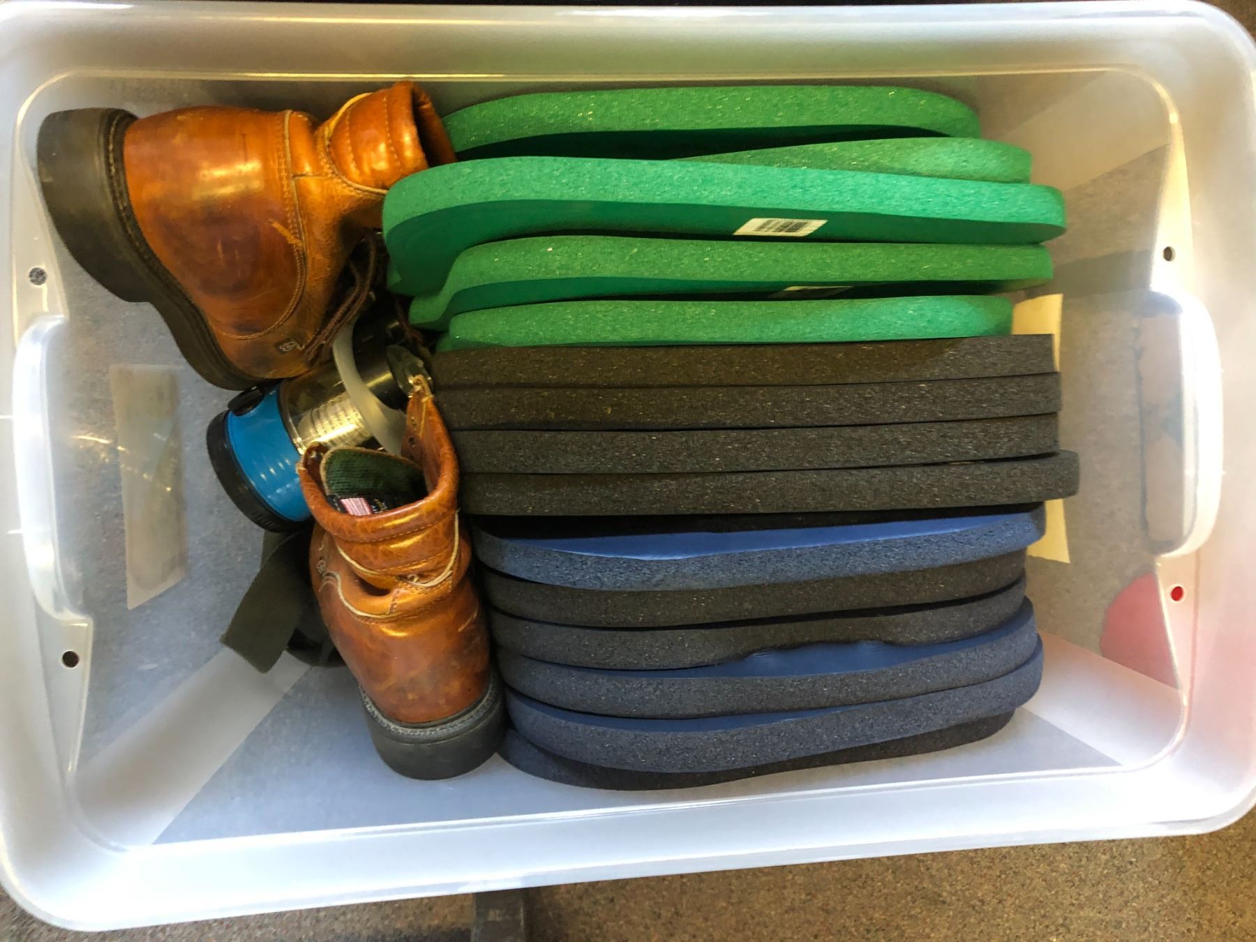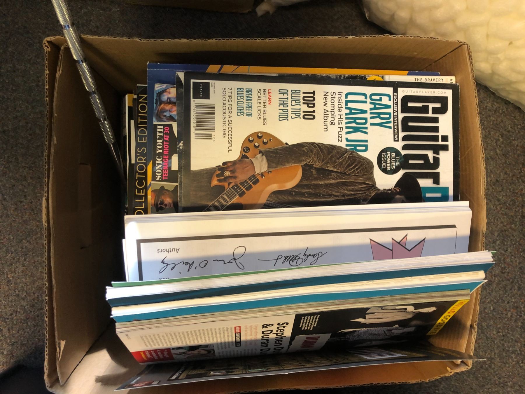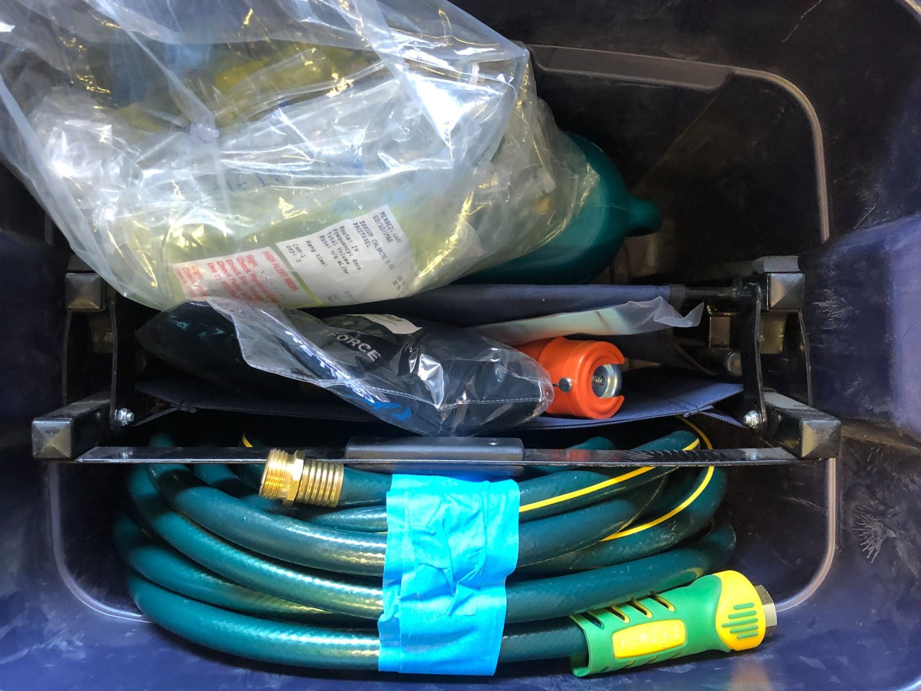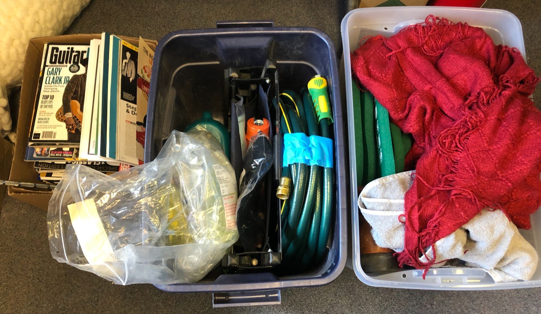 Large group of misc. set dec items - includes music magazine/ large water hose/ large group of therma seats etc.