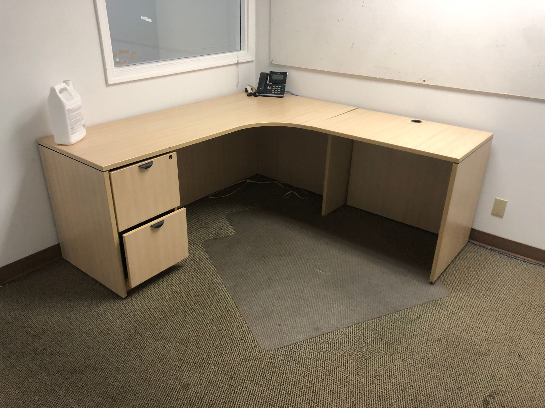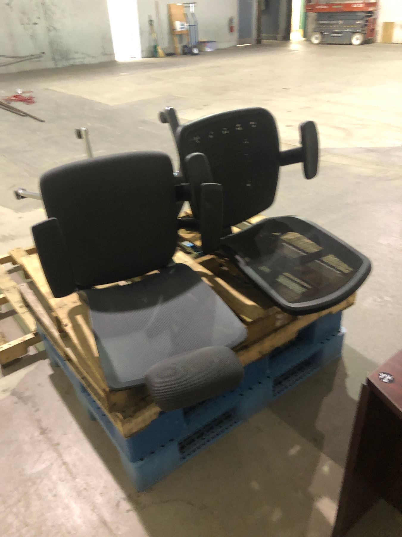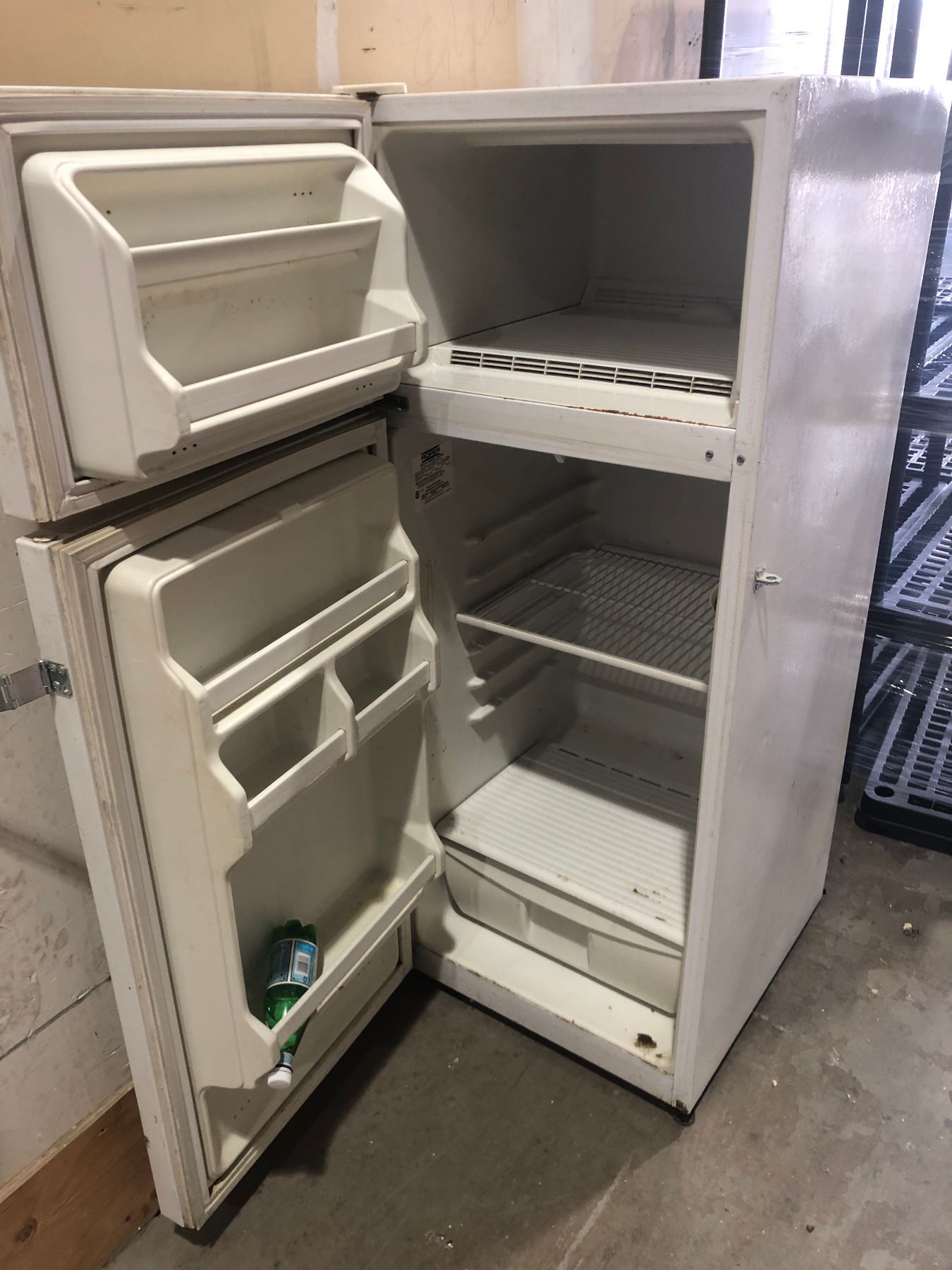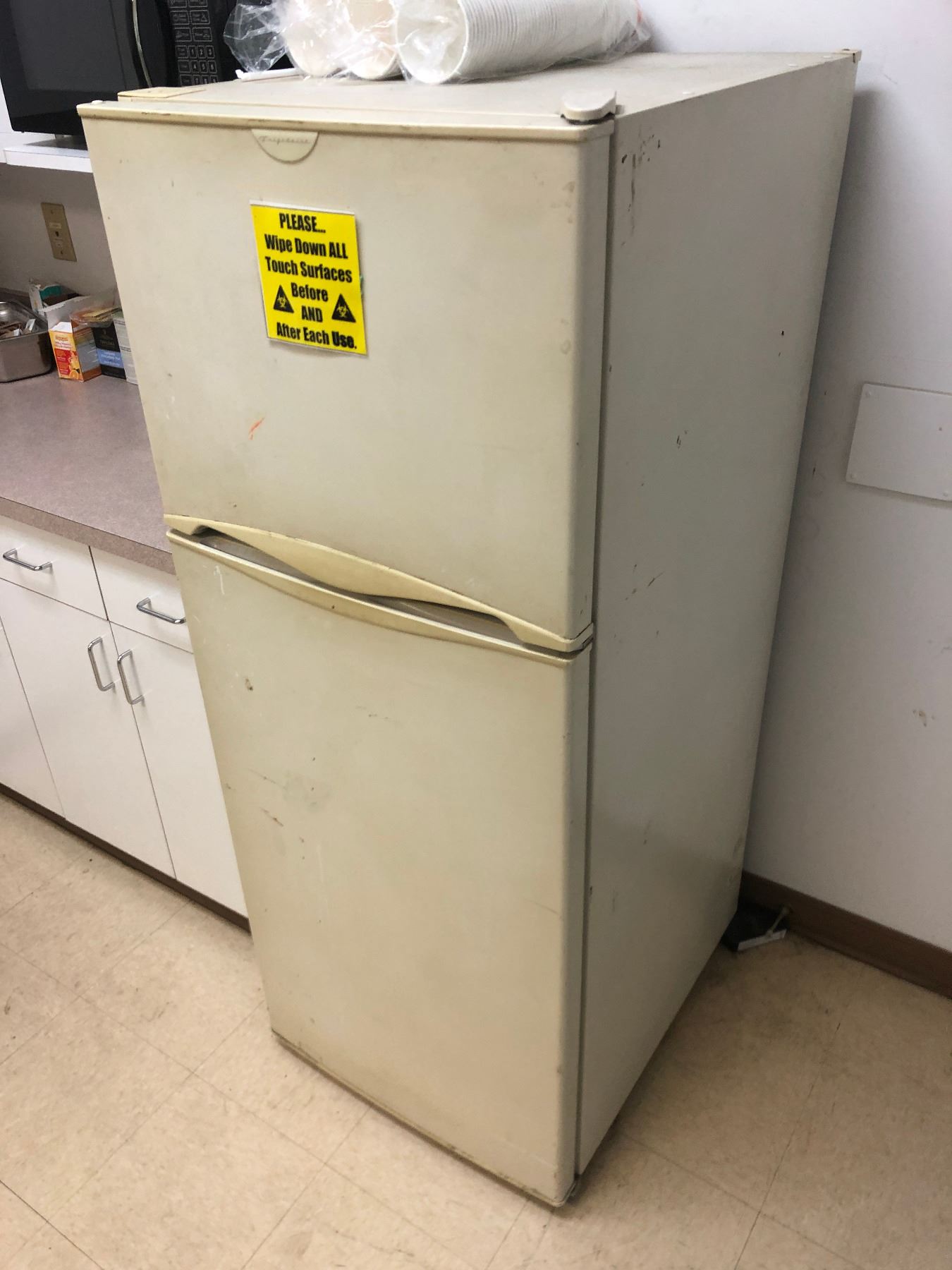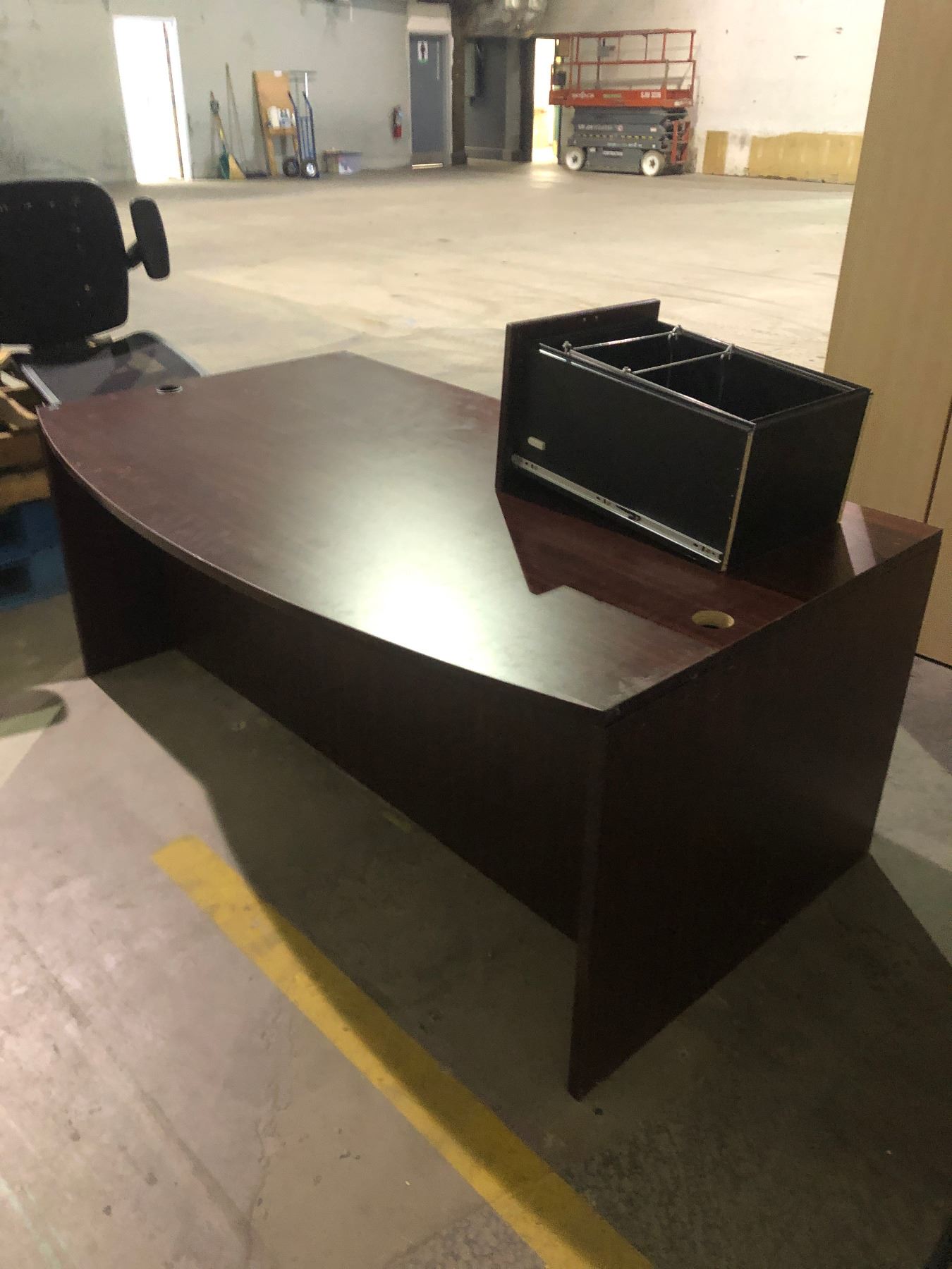 Large group of office furniture & 5 good working refrigerators (MUST TAKE ALL) - includes office chairs/ office desks/ office shelves/ floor lamps/ 2 rolling racks/ step ladders/ good working refrigerators etc.