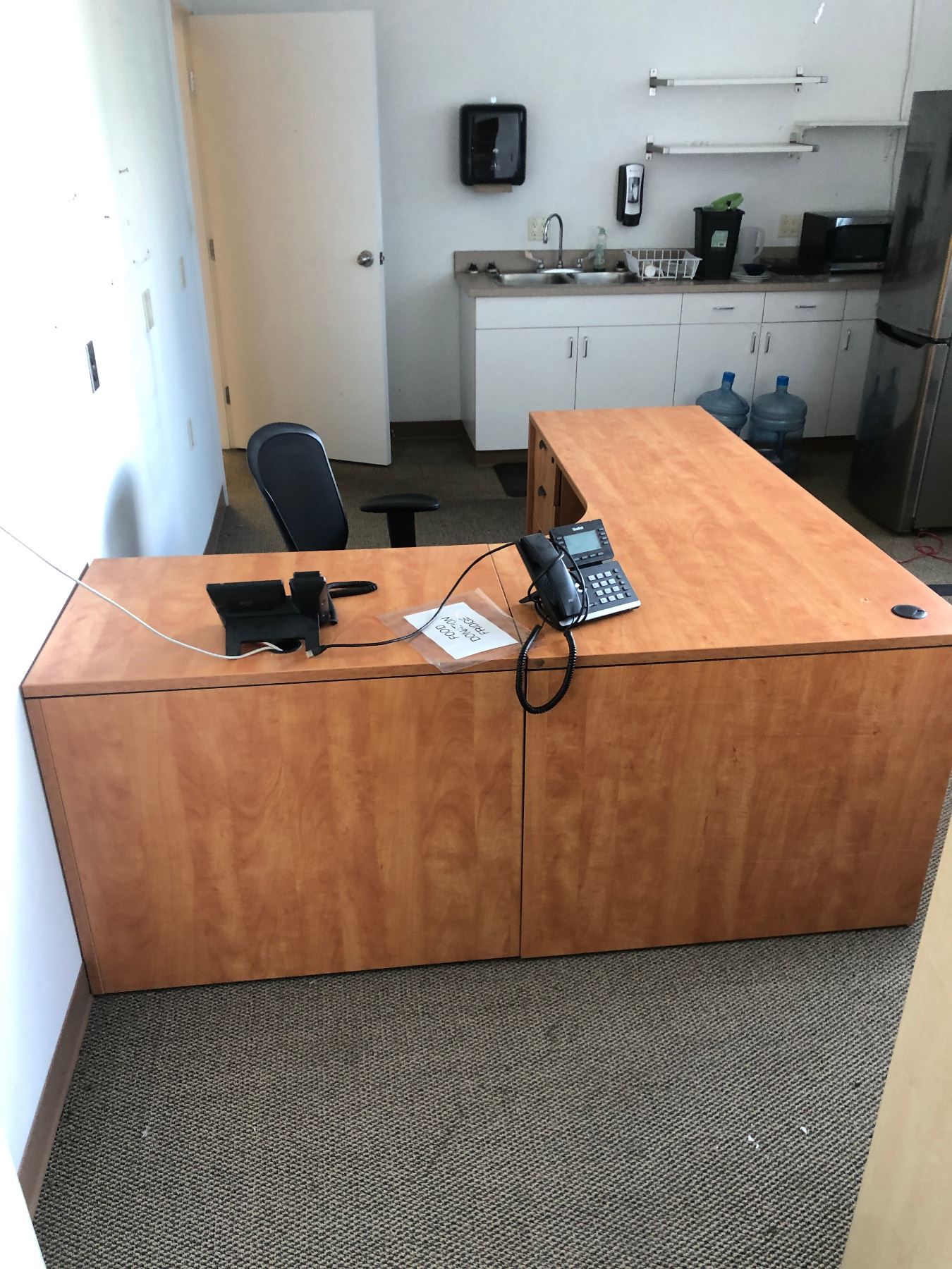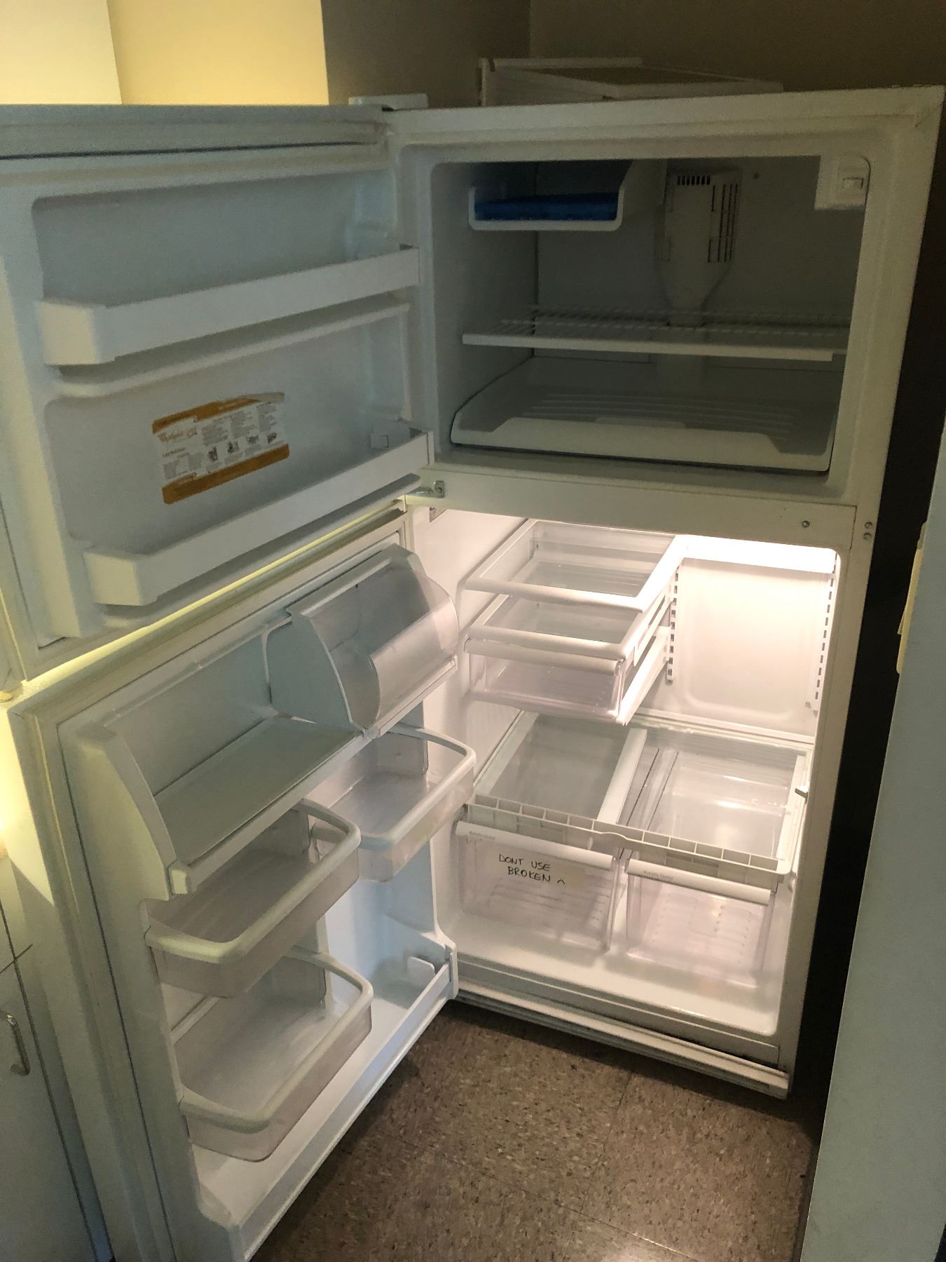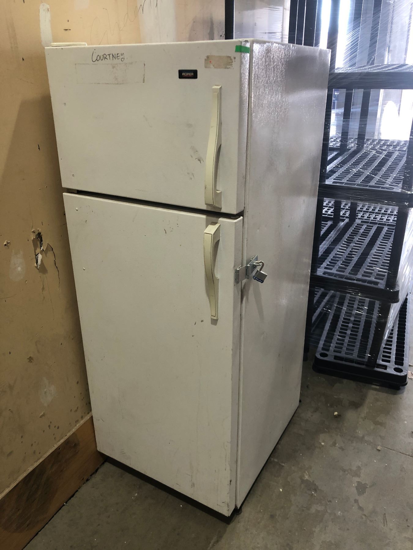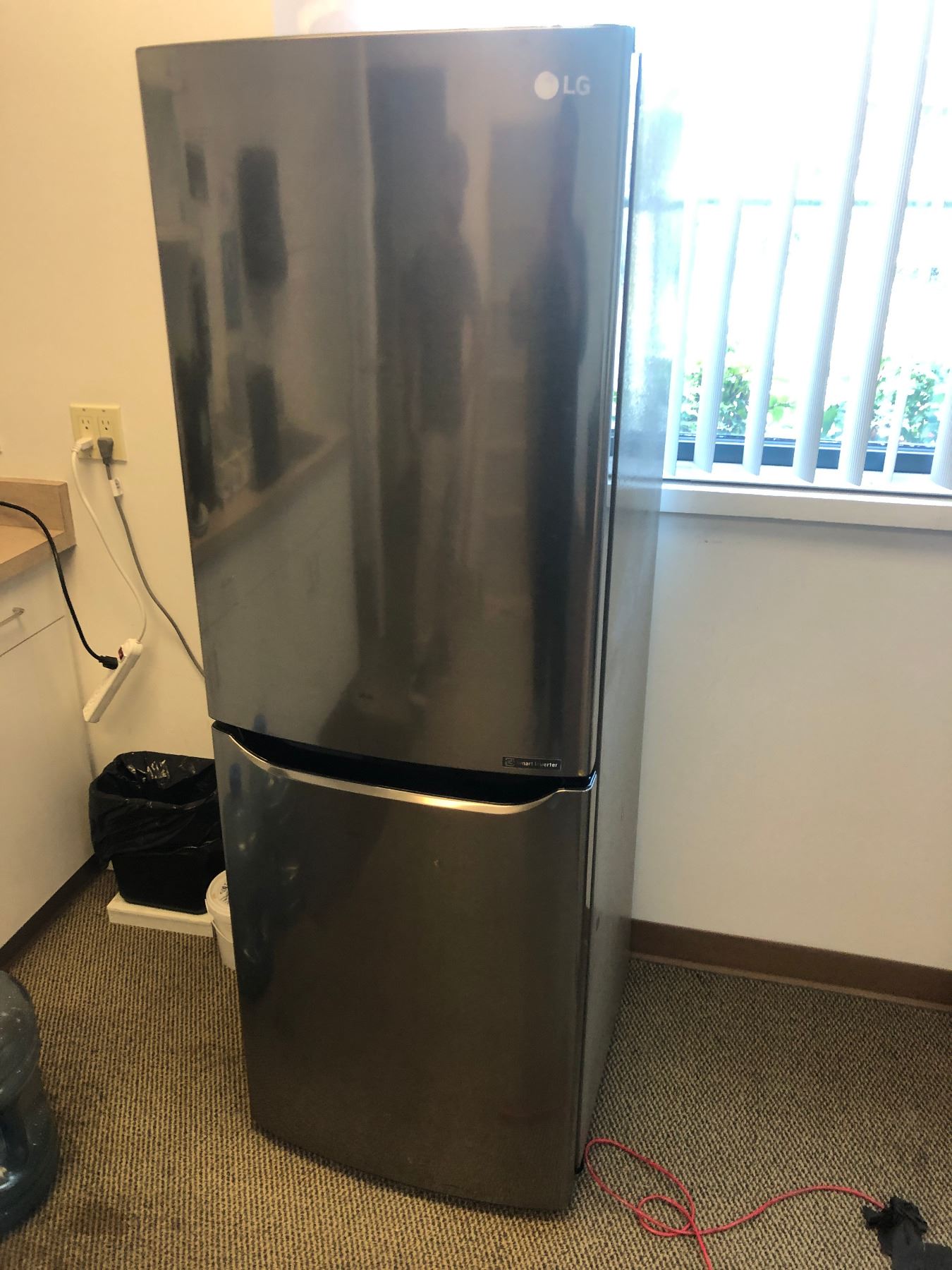 Large group of office furniture & 5 good working refrigerators (MUST TAKE ALL) - includes office chairs/ office desks/ office shelves/ floor lamps/ 2 rolling racks/ step ladders/ good working refrigerators etc.