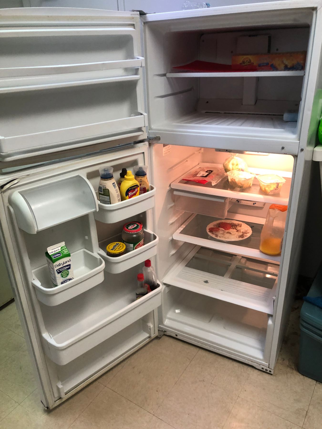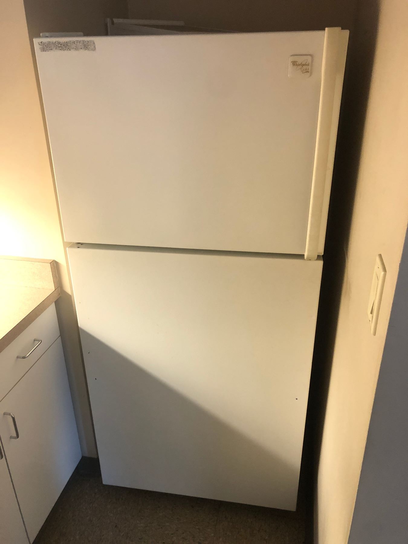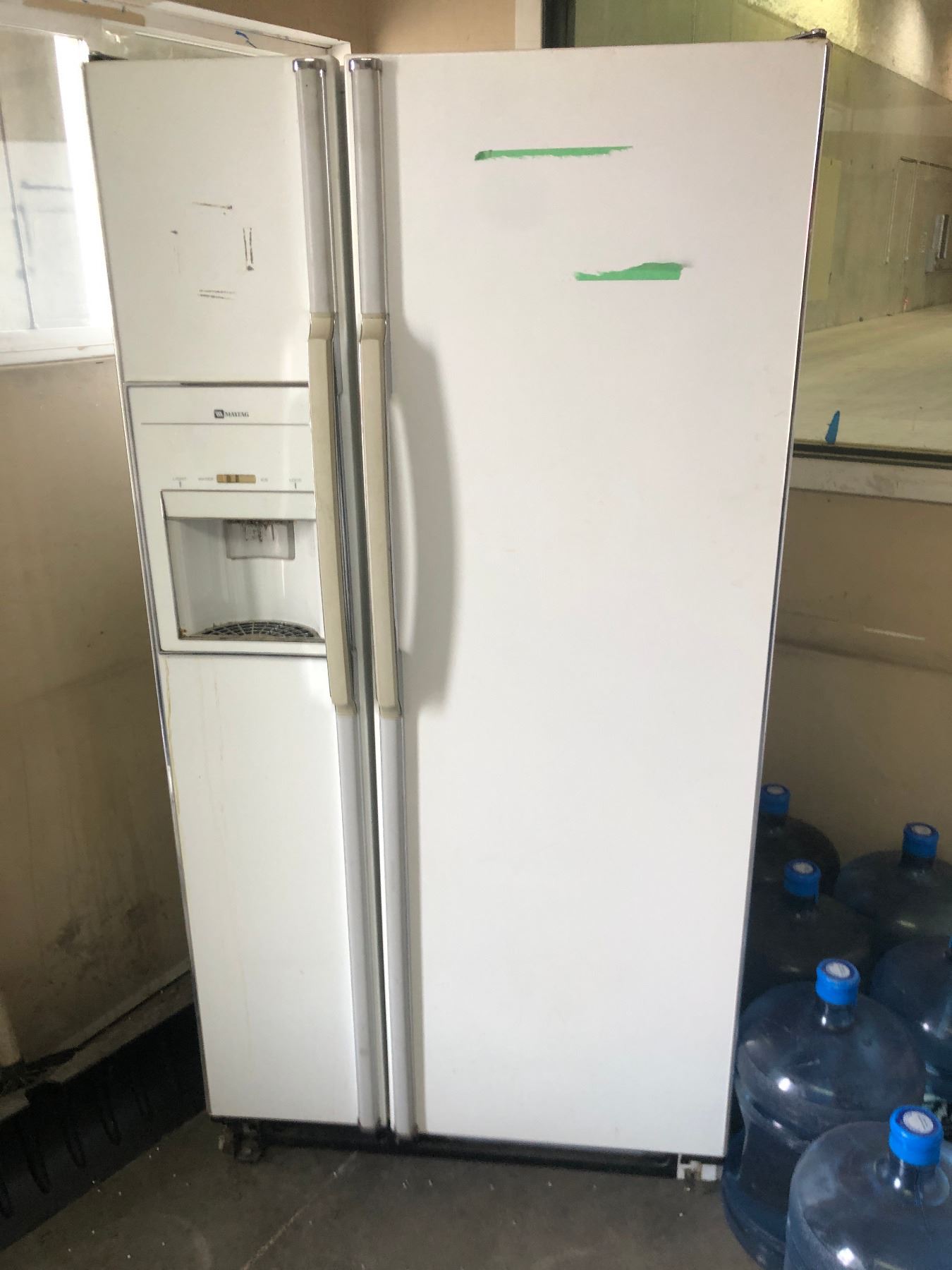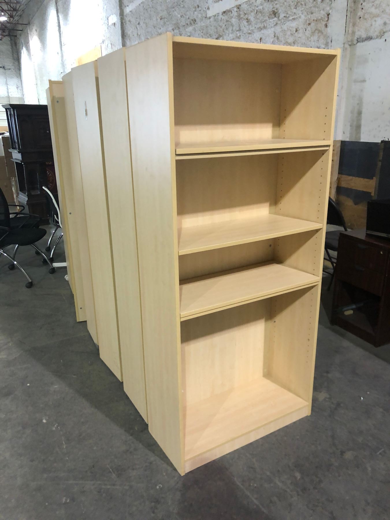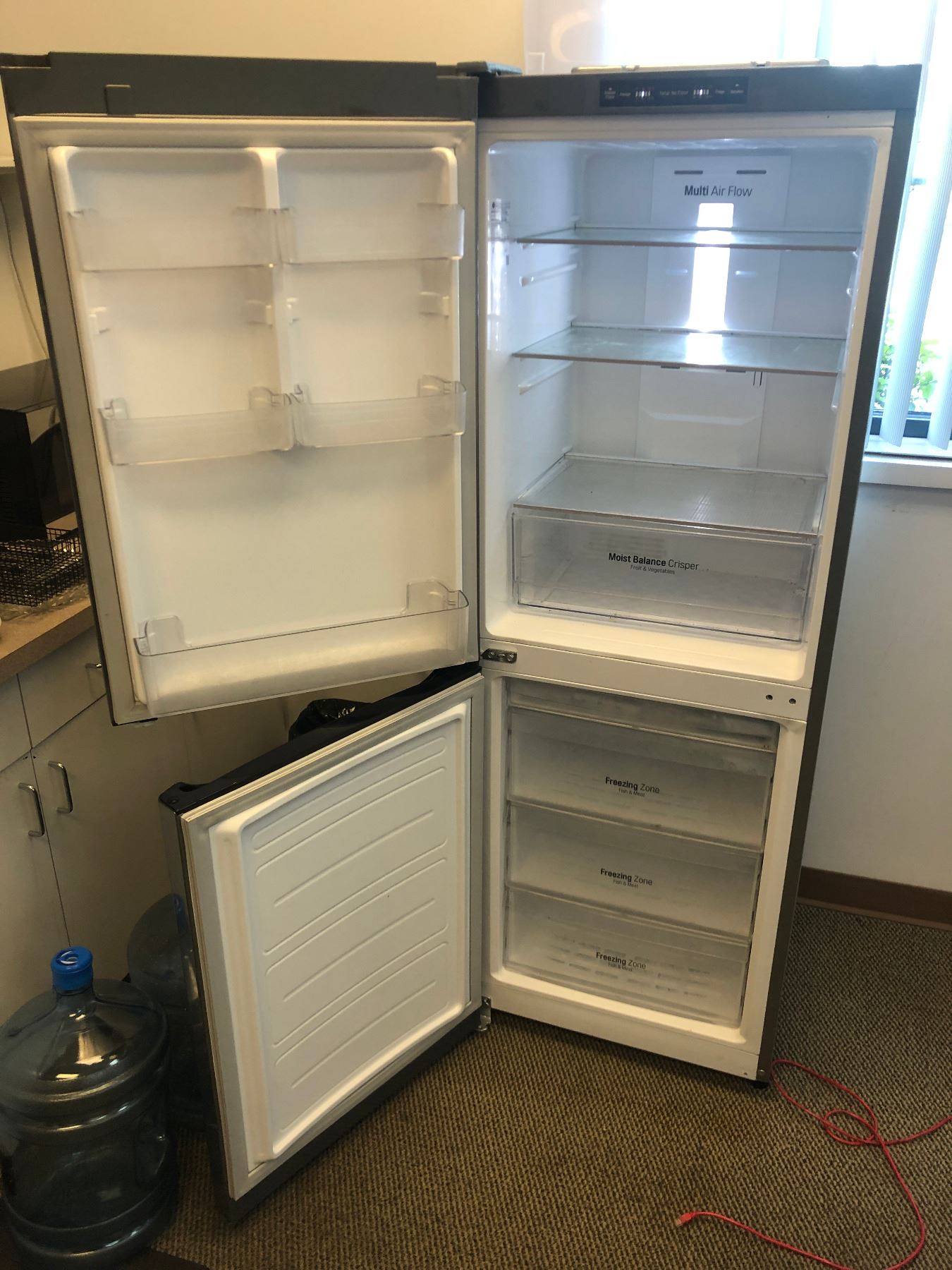 Large group of office furniture & 5 good working refrigerators (MUST TAKE ALL) - includes office chairs/ office desks/ office shelves/ floor lamps/ 2 rolling racks/ step ladders/ good working refrigerators etc.