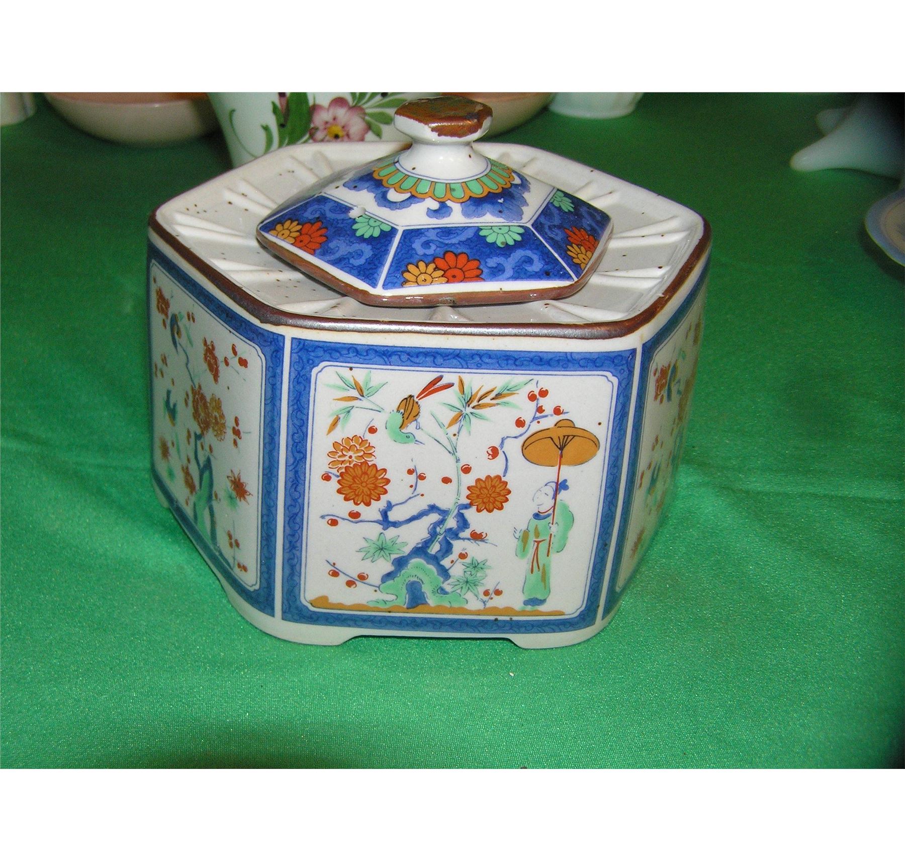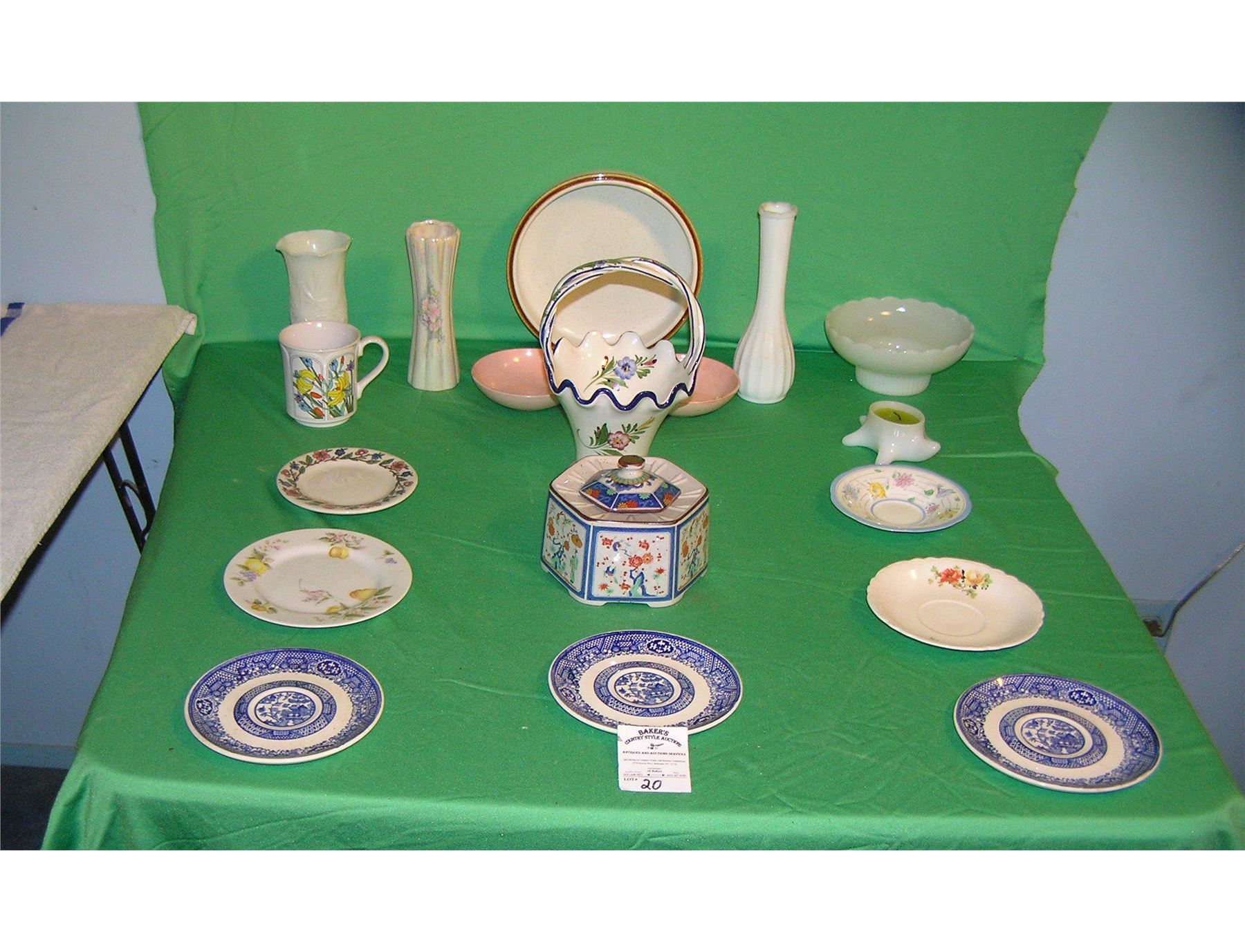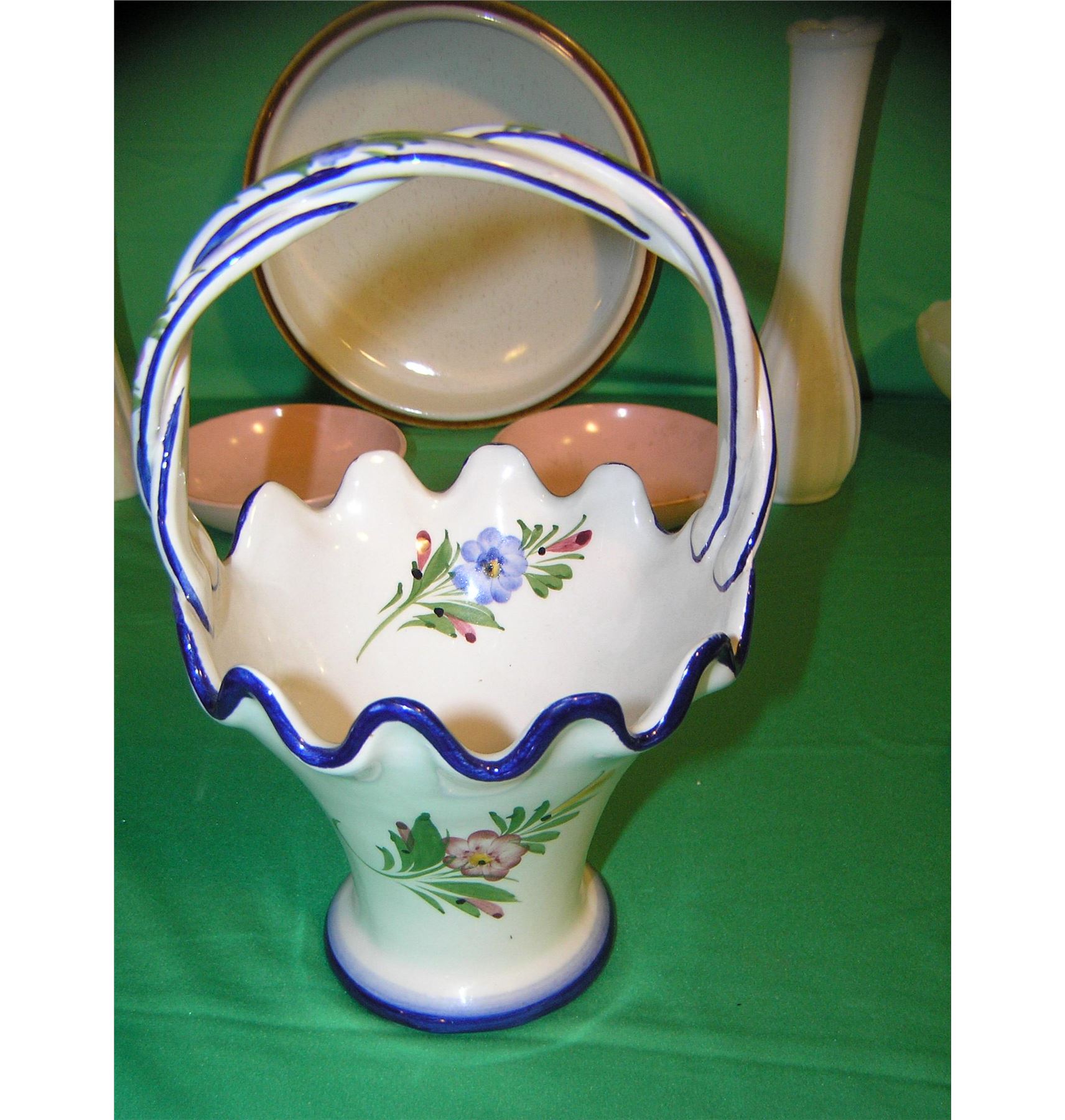 Large group of vintage porcelain and china includes hand painted floral basket mad ein Portugal, a Toscany censer, blue willow and more est. value $175.00-$200.00