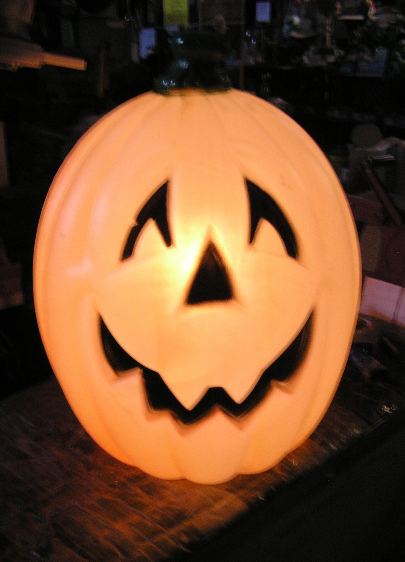 Large illuminated Halloween pumpkin display head 18 inches wide by 24 inches high by 15 inches deep working good est. value $80.00-$100.00