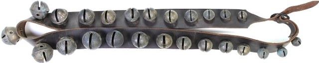 with 25 individual bells, 75" long remounted harness leather with old buckle.