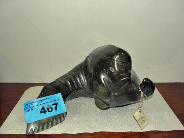 Large inuit soapstone carving - seal