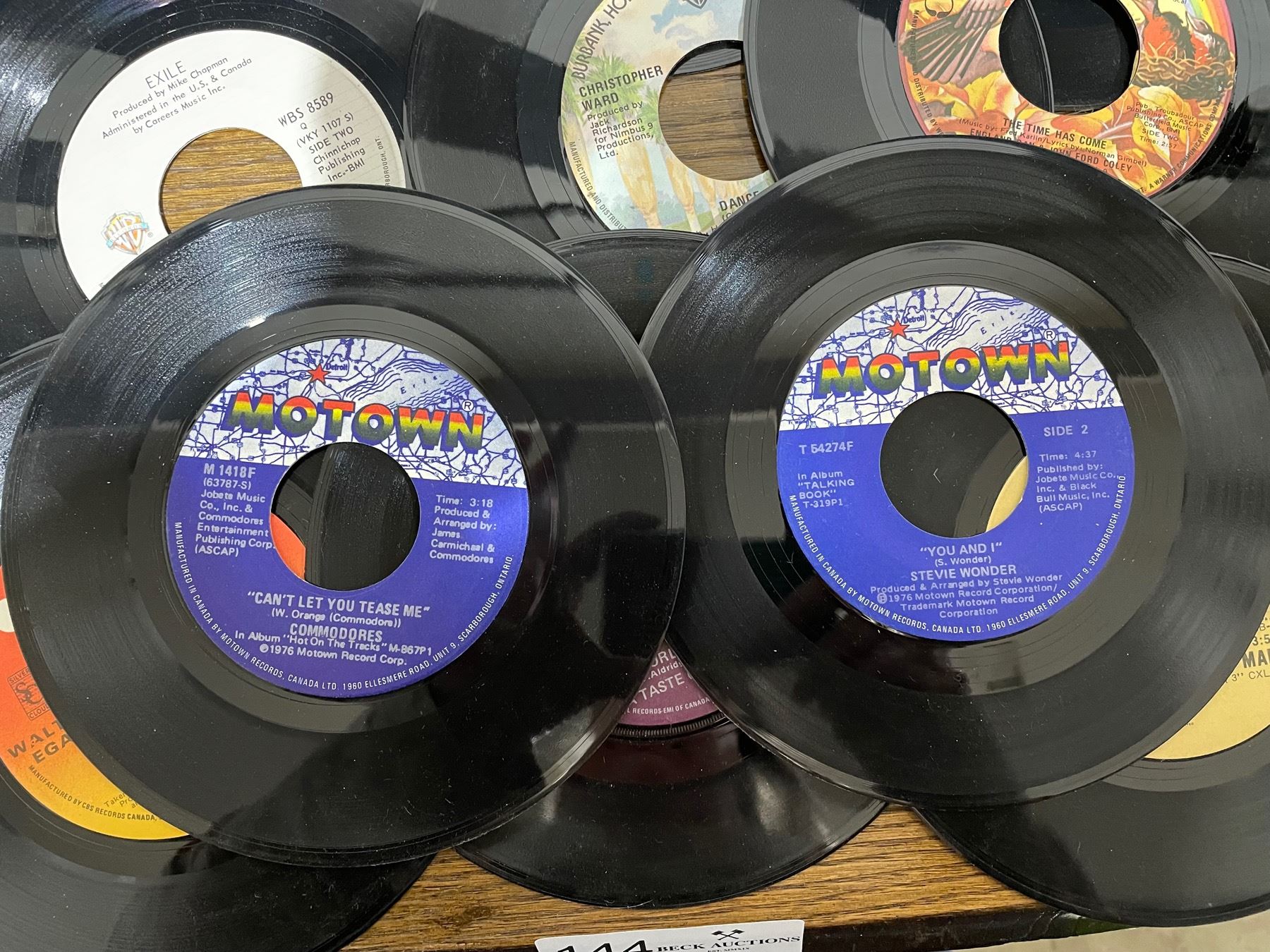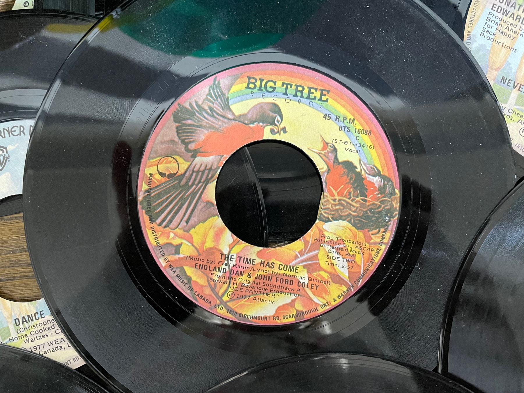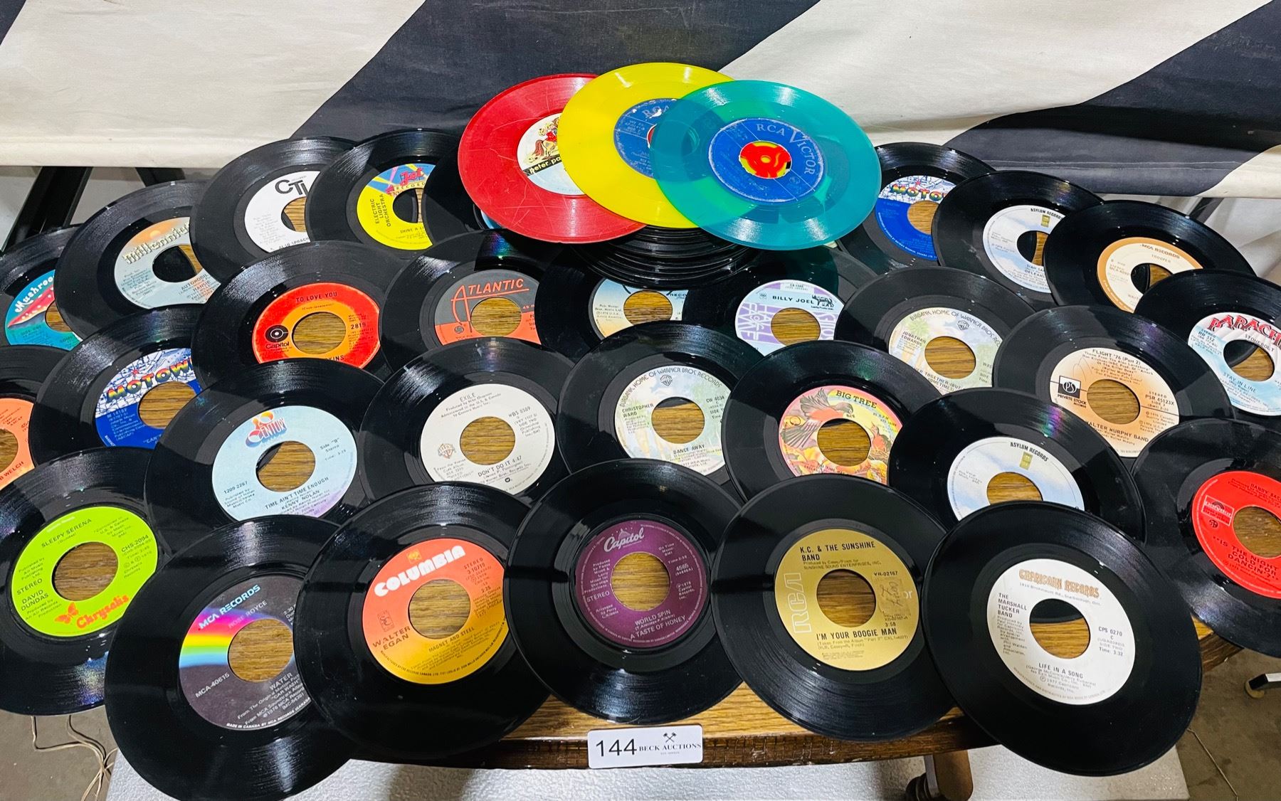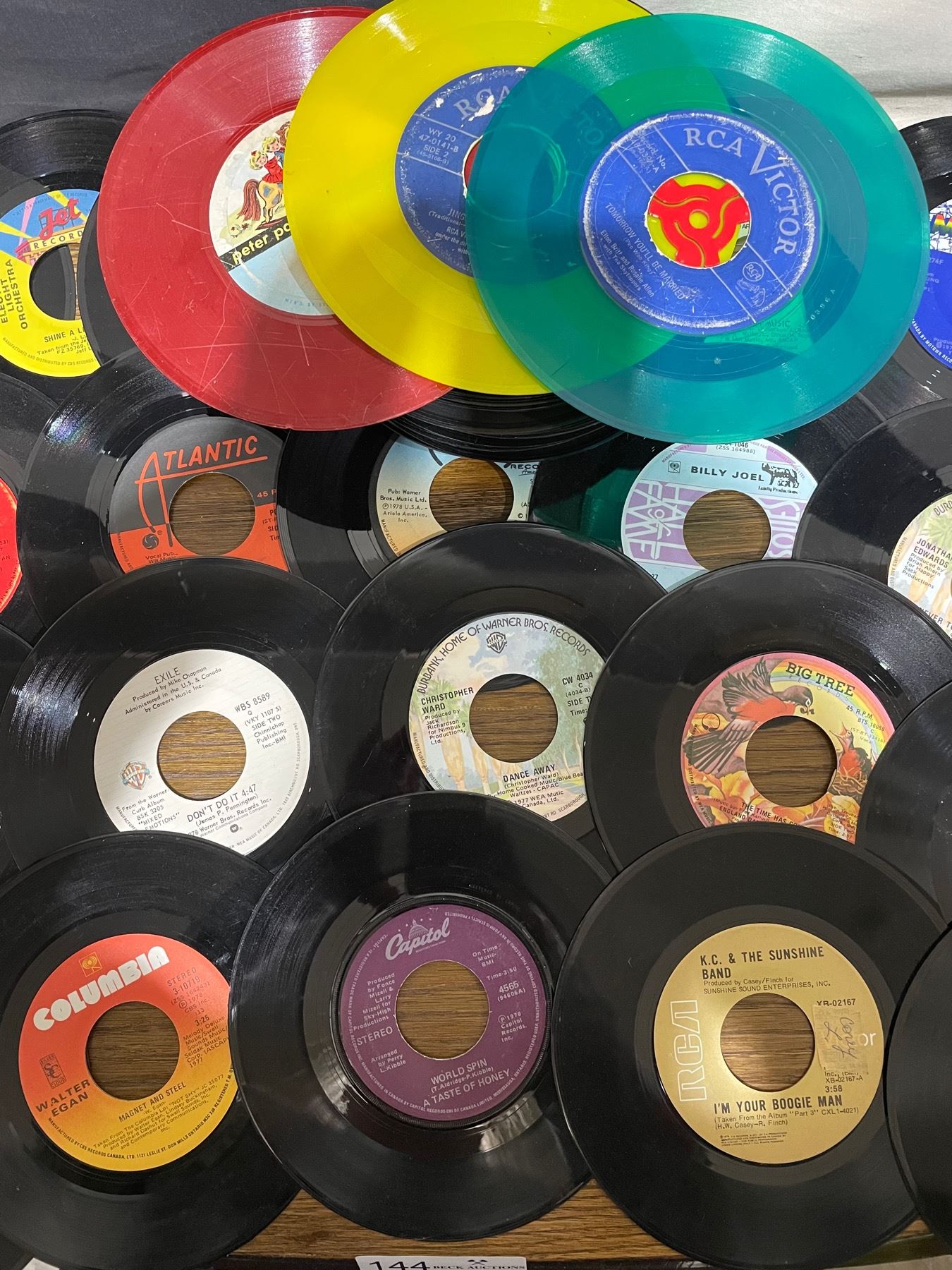 Approximately 50 - 60 vintage records 45 RPM. they do not have sleeves.