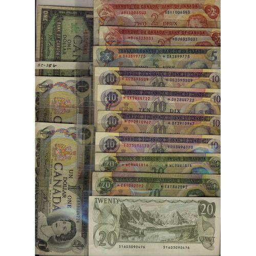 Large lot fo 13, Replacement, notes 1967 $1 *BM, 1973 $1 *AA, EAX, 1974 $2 ABX, *BJ, 1972 $5 *CA, 1971 $10 *DG, *DK, *DY, EDX, 1969 $20 *EA, *WE and 1979 $20 #516. Grades VG to EF