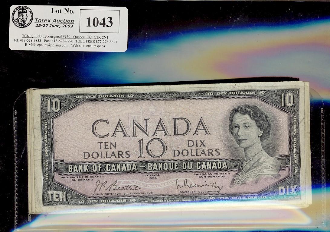 Large lot of 40 1954 $10 notes, different signatures and prefixes. Grades vary from VG to VF. Should be viewed! Sold as is, no return.