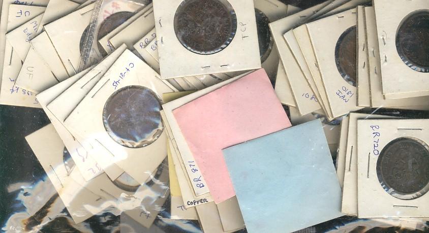 Large lot of 56 tokens. All Half penny tokens, variety of dates mainly common issues. Grades vary from Good to VF. An interesting lot.