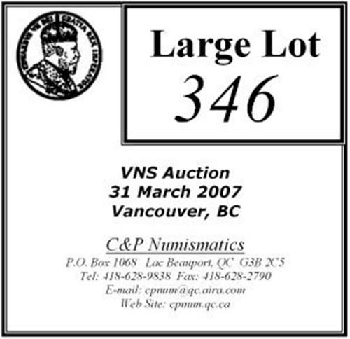 8. The estimates listed are taken from the Canadian coin news, Charlton catalogues, Canadian Dealers News letter and retail prices, ebay sales, Cornwell report or the actual market selling/asking prices. We have listed two estimates for each and every lot that represent today’s market. Most lots should sell between the two estimates. Better material or more popular lots will command a premium and should sell closer to the highest estimate or even more. Estimates are fair and very reasonnable, please bid accordingly. No lot should sell less than 50% of the estimates. With a bid of 80% of the estimate , you have a fair chance of succeeding, with a bid of 100% of the estimate, you will be likely to succceed.