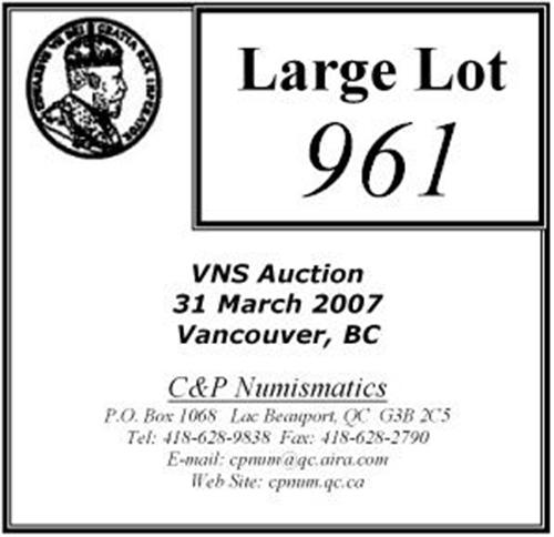 9. The cataloguer has taken every reasonnable measure to ensure that all of the lots in this sale are as described and genuine. All raw coins and banknotes have been graded by the cataloguer or the auction house which represent our best professional opinion. To grade coins and banknotes , we use Canadian grading standards, 26 years of experience and good conscience. Grading is a subjective description in the opinion of the cataloguer or the auction house . Among experts there are often differences of opinion on the grading and the eye appeal of a coin. The strike and the state of preservation are often debated. C&P acts as an agent between consignors and buyers. C&P does not guarantee that any coin or banknote catalogued will meet the standards, or the grade,of any third party grading companies. No warranty , whether impressed or implied.