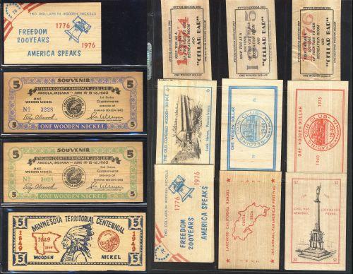 Large lot of WOODEN NICKEL TOKENS from the 40's to the 70's. Includes some wooden dollars as well. Over 100 pieces mostly different. Should be viewed!