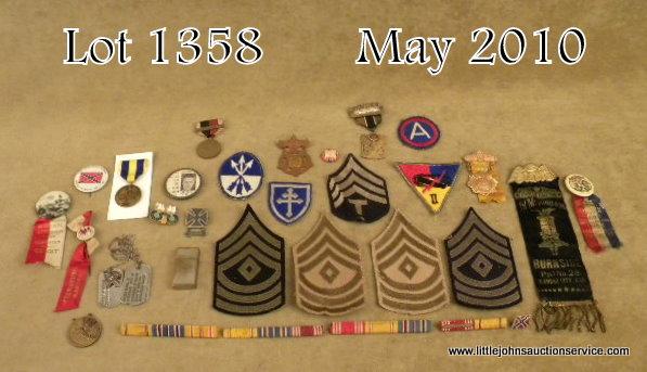 : Large lot of WWI, WWII, and Vietnam war patches, medals, and other miscellaneous memorabilia including aircraft recognition playing cards, etc. Est: $200 - $400