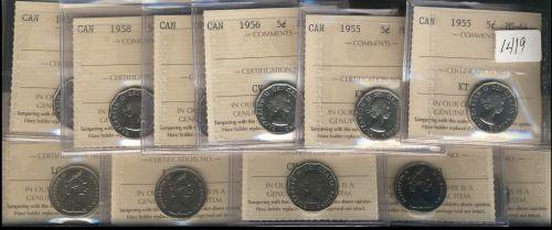 Large lot of eleven ICCS MS64 graded coins. Includes 1955 (2), 1956, 1958 (3), 1960, 1967 (4).