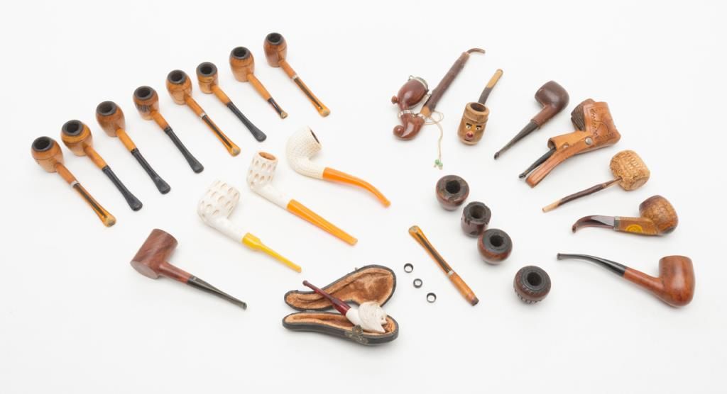 Large lot of misc. smoking pipes and pipe bowls; a lifetime collection. Est.: $75-$150.