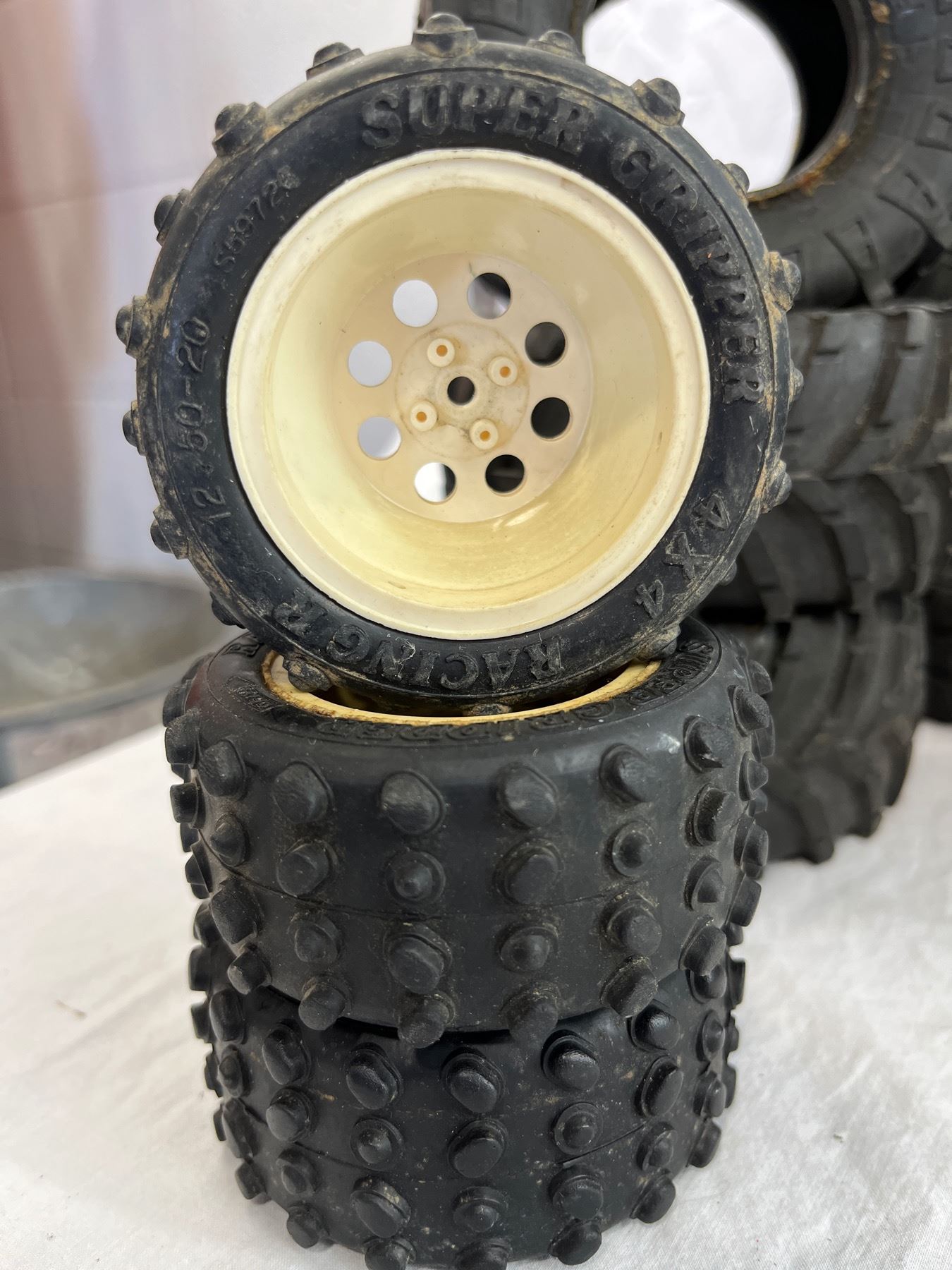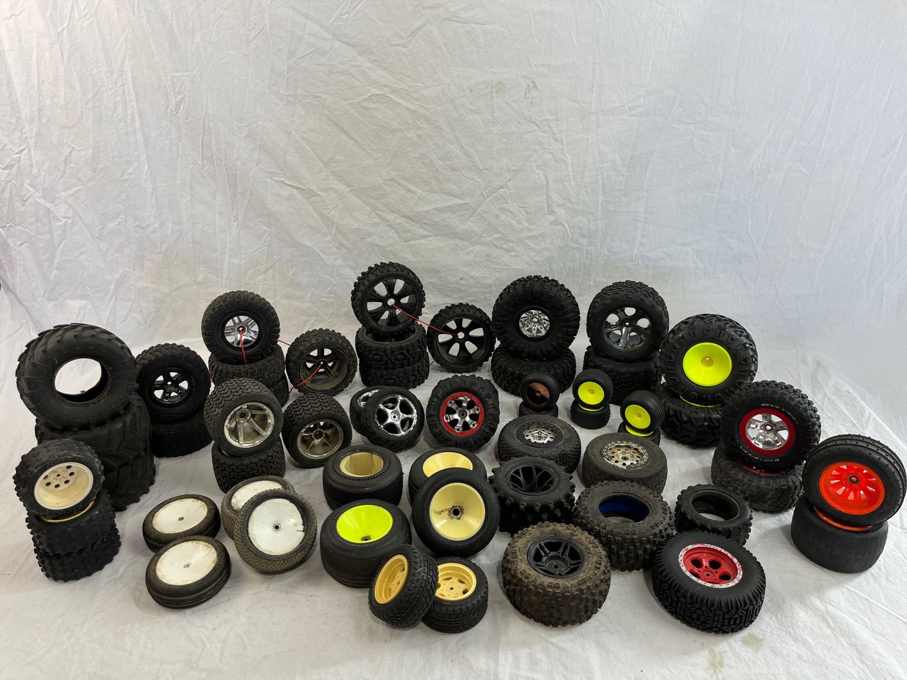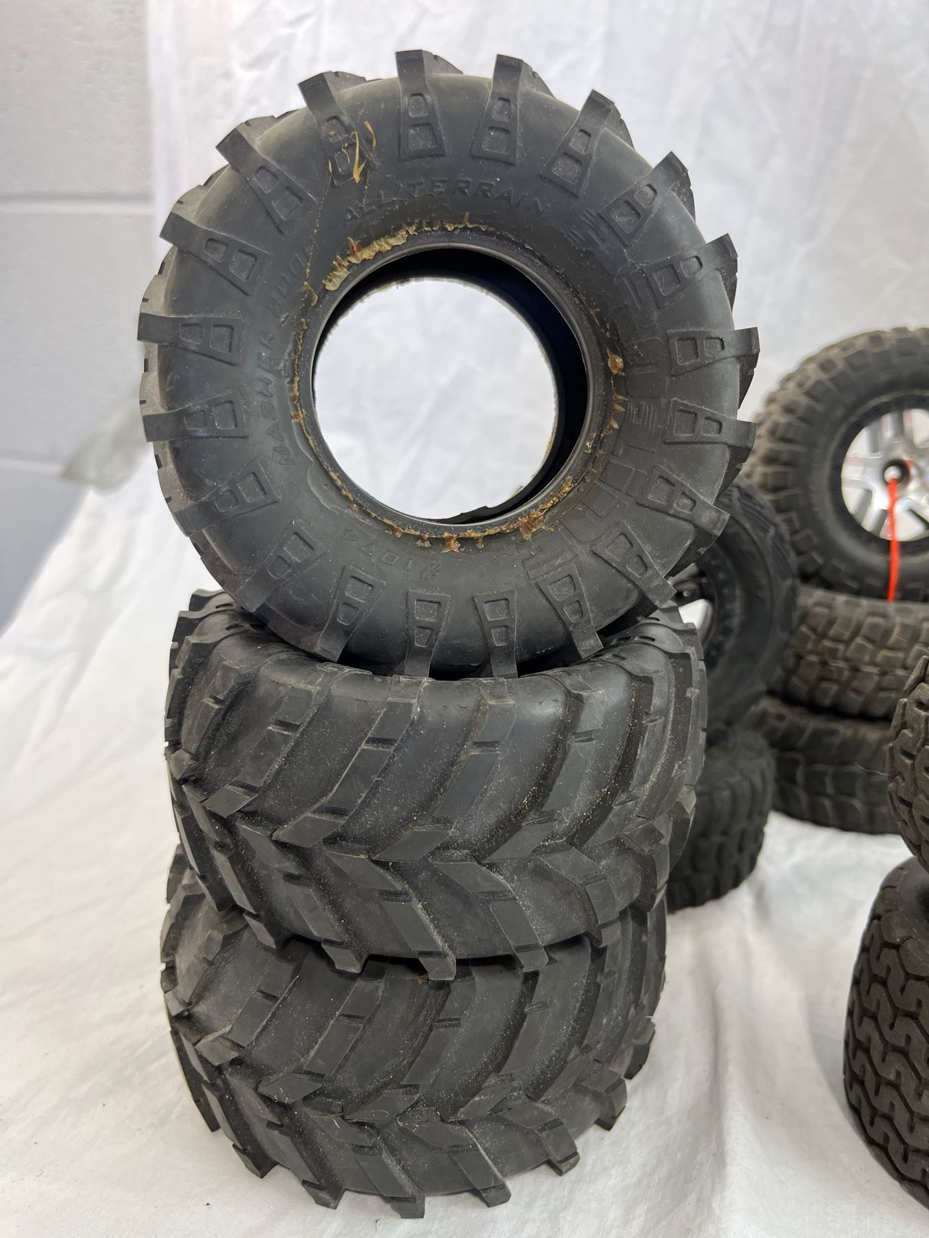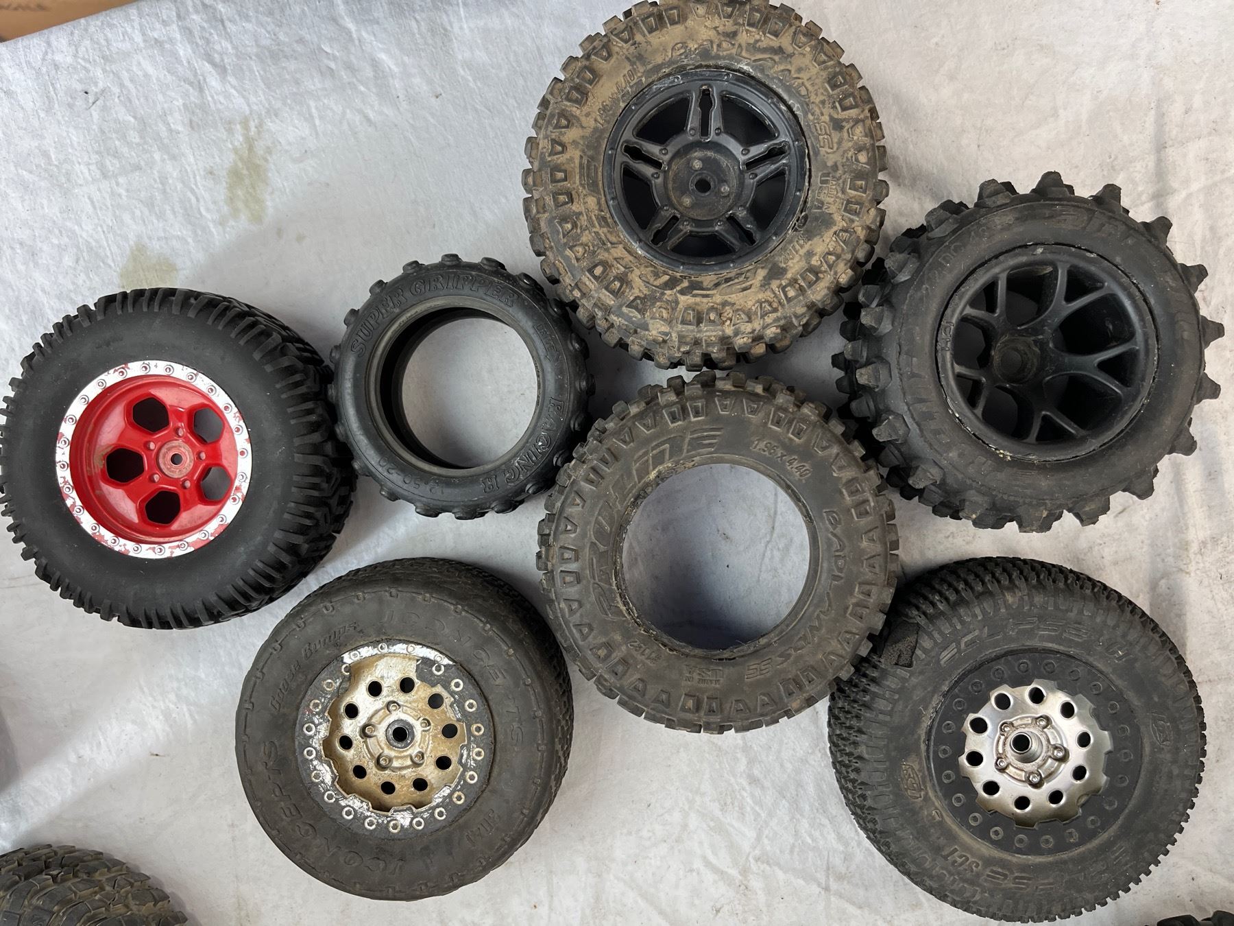 With and without rims with diameters ranging from 2"-5". Brands including pro-line, duratrax, kumho, moab and others.