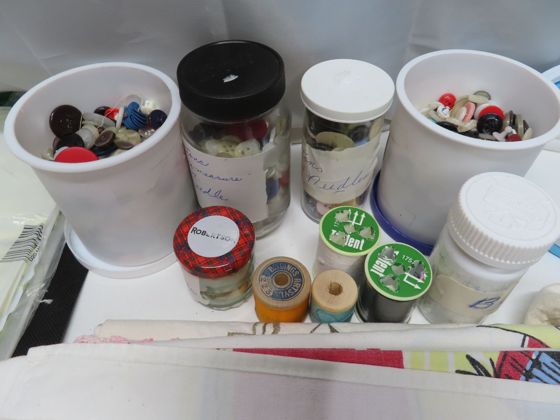 Large lot of sewing supplies (Buttons, Thread, Patches, Blankets, etc.)