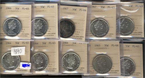 Large lot of ten ICCS Proof-like graded coins. Includes 1964 (3), 1965 (2), 1966 (2), 1967 (3). Grades vary from PL64 to PL65. Two pieces are nicely toned.