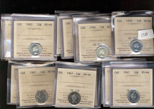 Large lot of twenty-five ICCS MS64 graded coins. Includes 1958 (8), 1961 (2), 1963 (3), 1967 (11), 1968 Silver. Some are attractively toned.