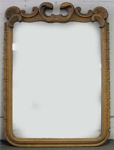 Large mahogany framed hall mirror with scalloped crest; 20th C. measures 7' 4" high x 5'3" across (a few small scratches on mahogany)
