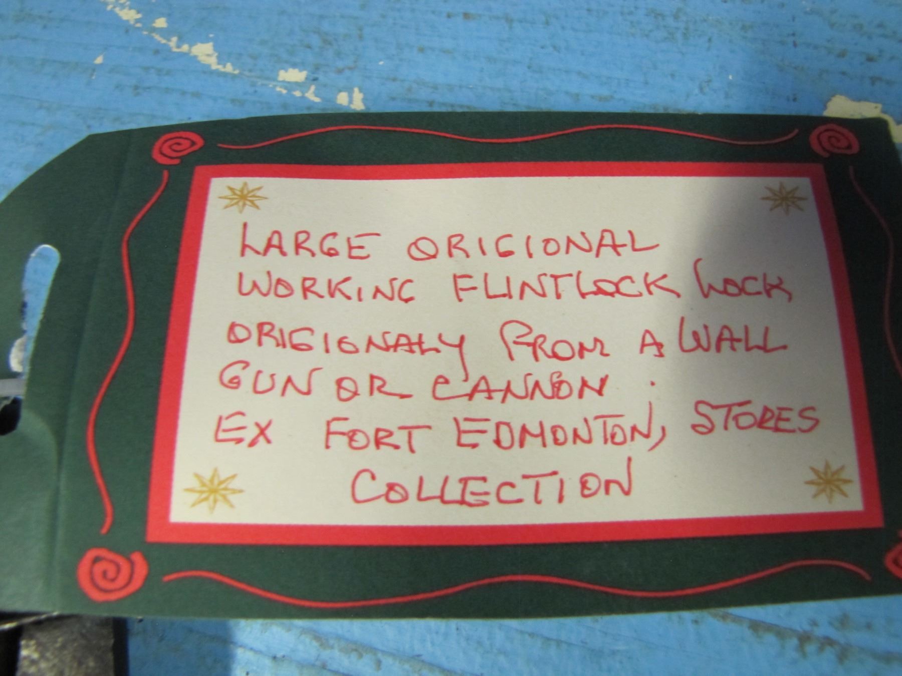 Large original working flintlock from a wall gun or cannon circa 1800-ex Fort Edmonton stores collection-Excellent Condition