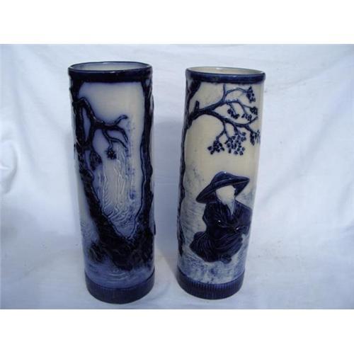 We offer a superb pair Floor Vases from Thomas Forester and Co Longton Staffs c1885.Stylishly decorated in relief with seated Chinese figres amongst a Foliate background all excecuted in Blue and White,Offered perfect with no chips or cracks etc.Printed and Impressed marks