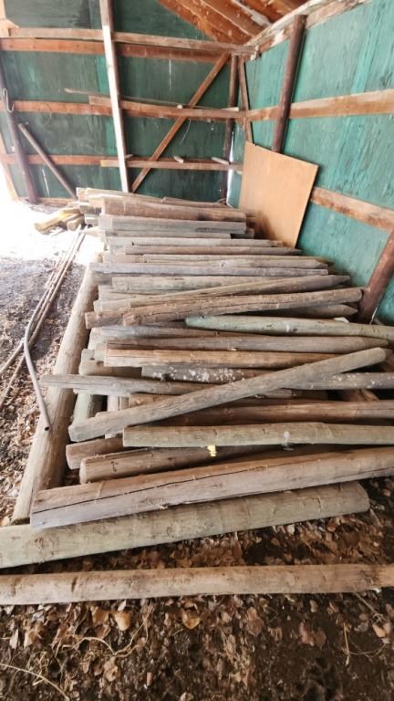 Large pile of round fence post stakes