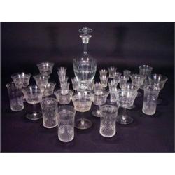 Large quantity of etched Edwardian sherry glasses, tumblers, wines glasses and decanter