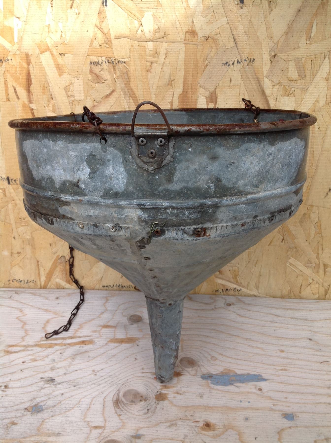 LARGE RIVETED, GALVANIZED FUNNEL