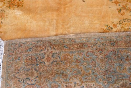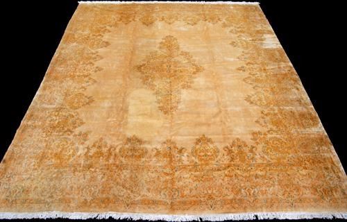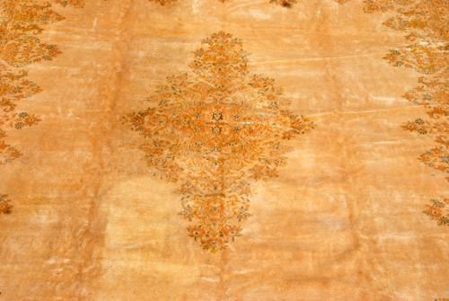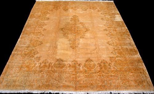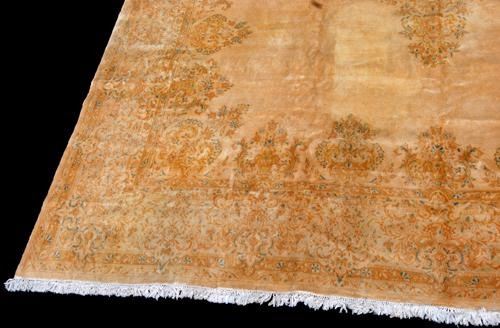 Beautiful large room size authentic Persian Kerman. Made of fine quality baby lamb's wool pile on cotton foundation, all natural vegetable dye, this is a truly beautiful Rug. Incorporating an open field design; with a nicely done teardrop floral medallion and an immensely detailed floral trim border. The beautiful floral motifs of this rug were inspired from the great Persian gardens of Kerman. Hand woven by a master carpet weaver in Kerman, Iran. Size 14 feet 6 inches X 12 feet.