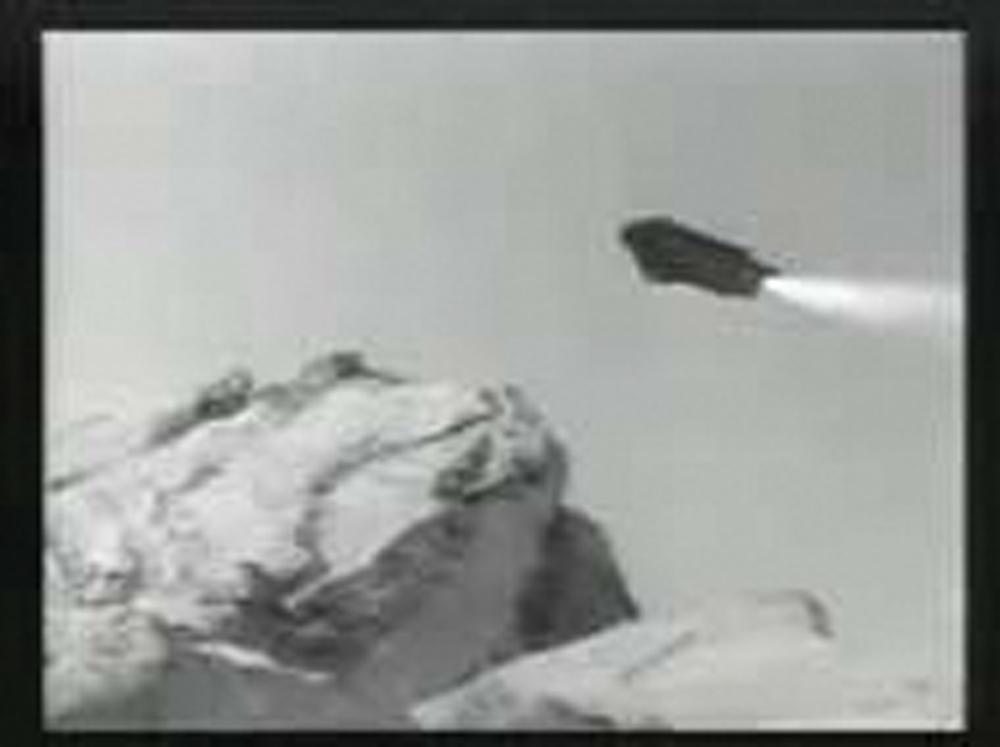 (Republic Pictures, 1952) Fuselage constructed of fiberglass, with fins and turret of balsa wood, painted matte silver for special effects filming, and measuring 52” long, 12” high, and 14” wide. Small metal nosecap is attached to prevent structural damage during motion effects, as well as nose and tail eyelets (with nylon filament remnants) for “invisible” suspension while filming. This is the invading Martians’ space ship, who have come to blow Earth off its orbit so that Mars can take its warmer place in the solar system. This prop space craft is clearly visible not only in numerous scenes throughout both serials, but appears in a number of posters and other original publicity materials for them as well. Zombies of the Stratosphere gained quite a late cult following after unbilled menacing Martian Leonard Nimoy came to fame 14 years later in the television series Star Trek (not entirely unlike these simple space operas), portraying once again, an inscrutable and emotionless alien, Mr. Spock. This amazing relic of the beginning of space travel on screen, which was designed by the legendary sci-fi effects team of Howard and Theodore Lydecker, saw extensive duty for Republic, and may even have appeared in other serials like Radar Men from the Moon and the like. Condition is quite remarkable considering its age and the manner in which it was used, including smoke effects billowing from tail (soot residue is present, and paint has bubbled in that area); paint layer has crackalure and has chipped out in a few small areas, revealing fiber web of structure; fin edges are scraped and extreme tips of the four larger tails are missing; turret once had a small faux gun barrel which is missing; all very minor issues when considering the historical significance (not to mention the fun factor) of such a spectacular and unique science-fiction film prop. Very Good.