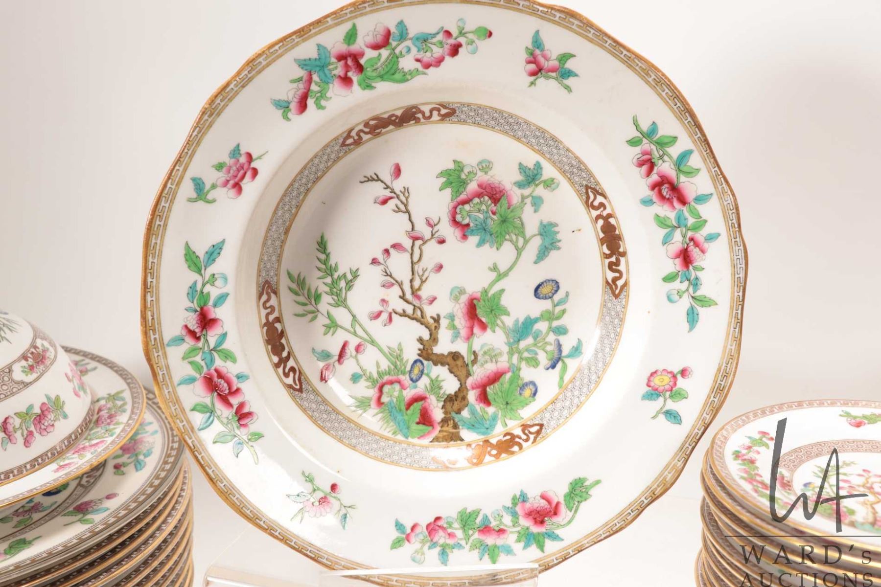 Large selection of Copeland Spode plus unmarked Indian Tree tableware including lidden muffineer, 13
