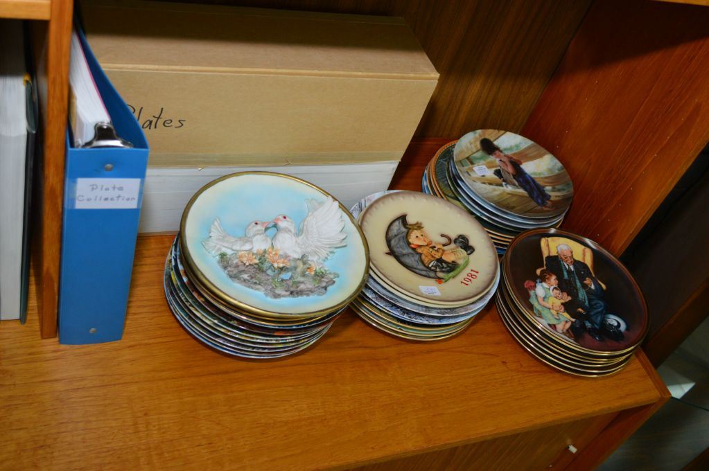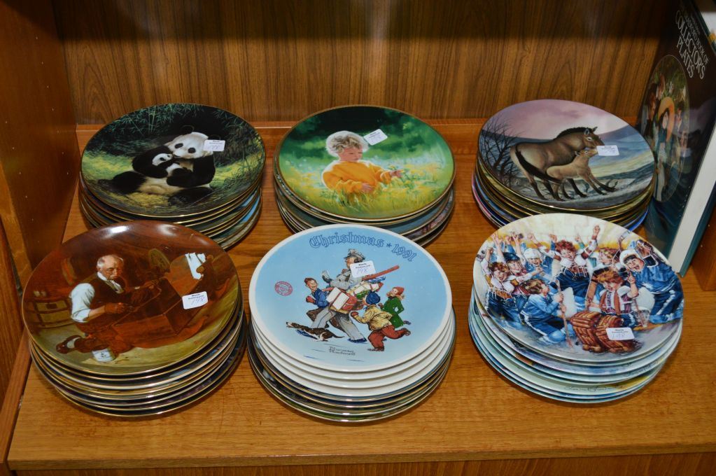 Large selection of collector's plates including Norman Rockwell, Endangered Species, Scenes of Christmas' past, Reflections of a Canadian Childhood etc. 88 plates in total including all COA's and boxes