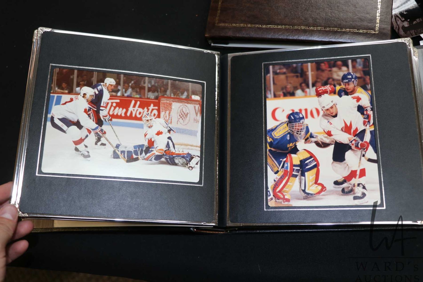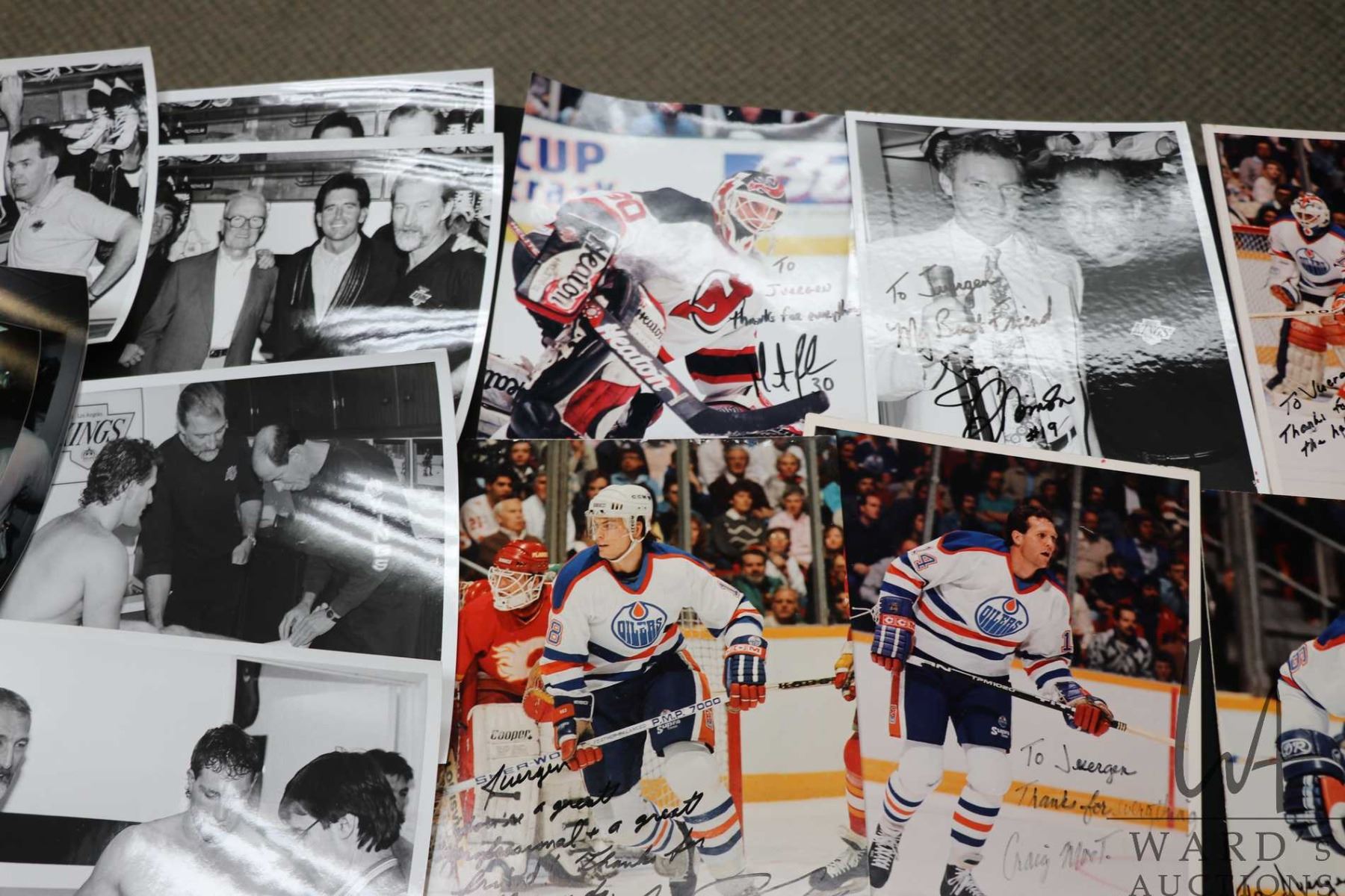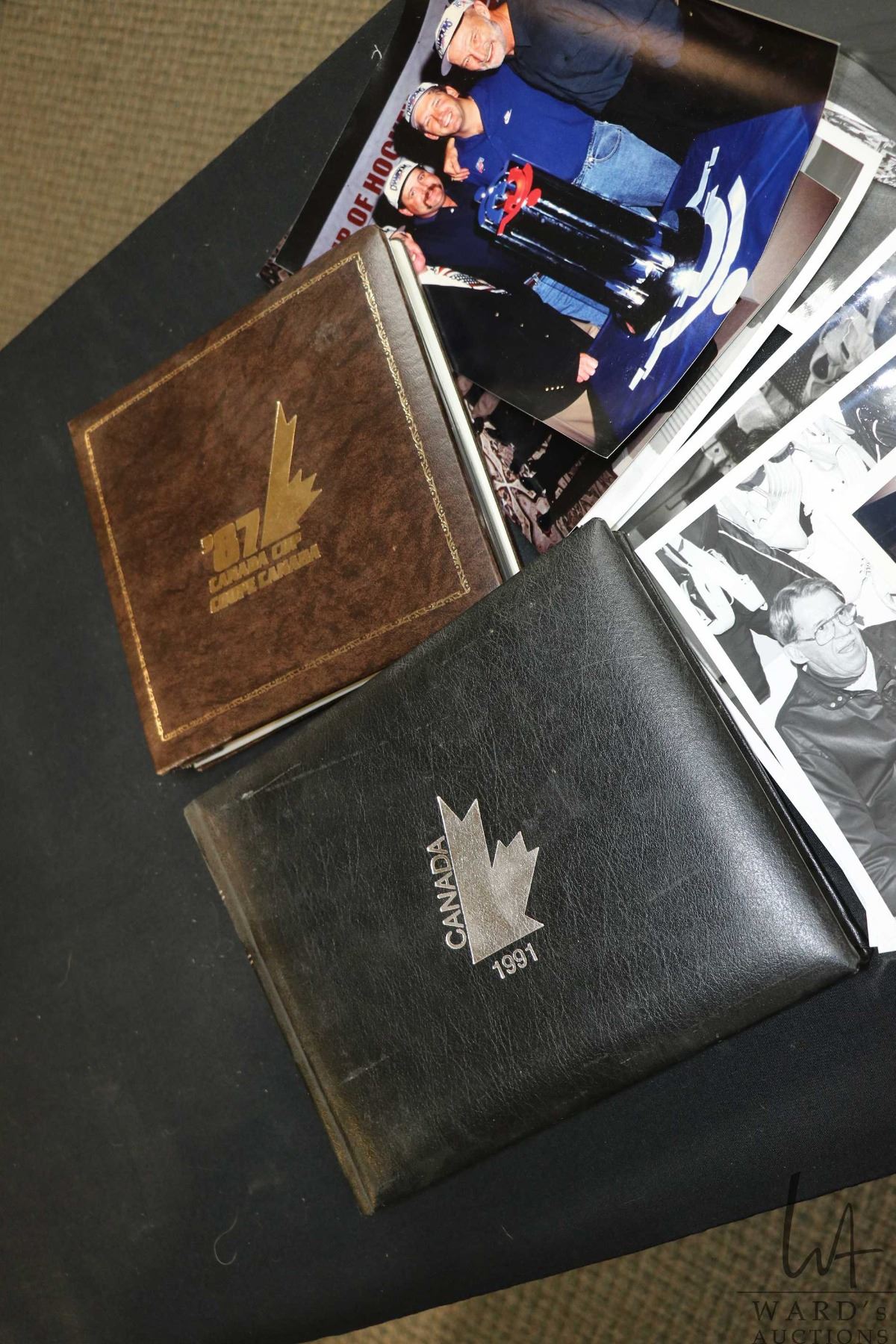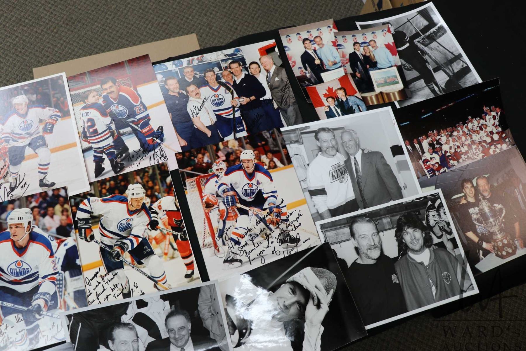 Large selection of colour and black and white promo photos, several hand signed including Kevin Lowe, Steve Smith etc. plus two albums of photos from the 1997 and 1991 Canada cup. All from the personal selection of Oiler's masseuse Juergen Merz, circa 1980's.