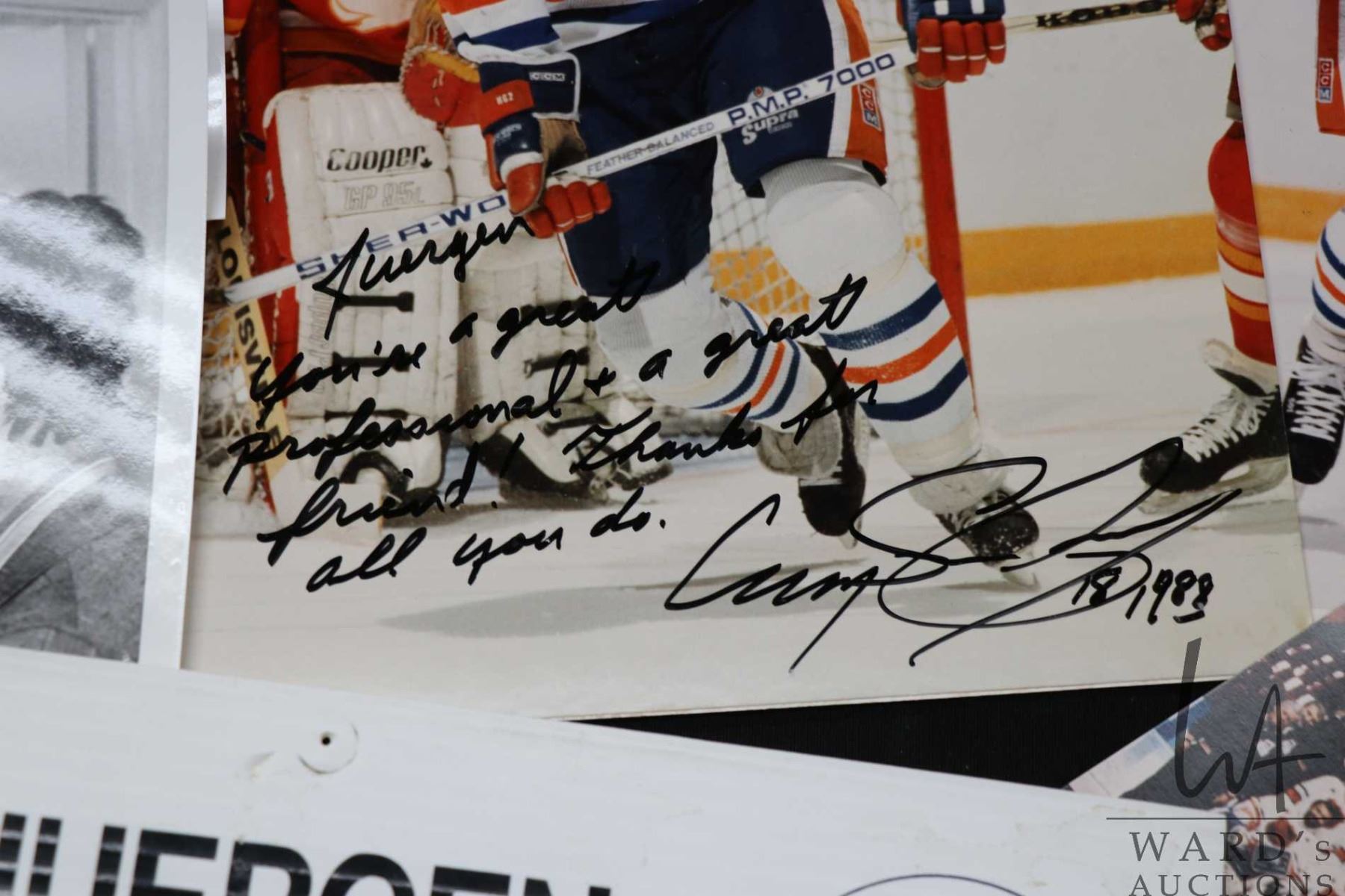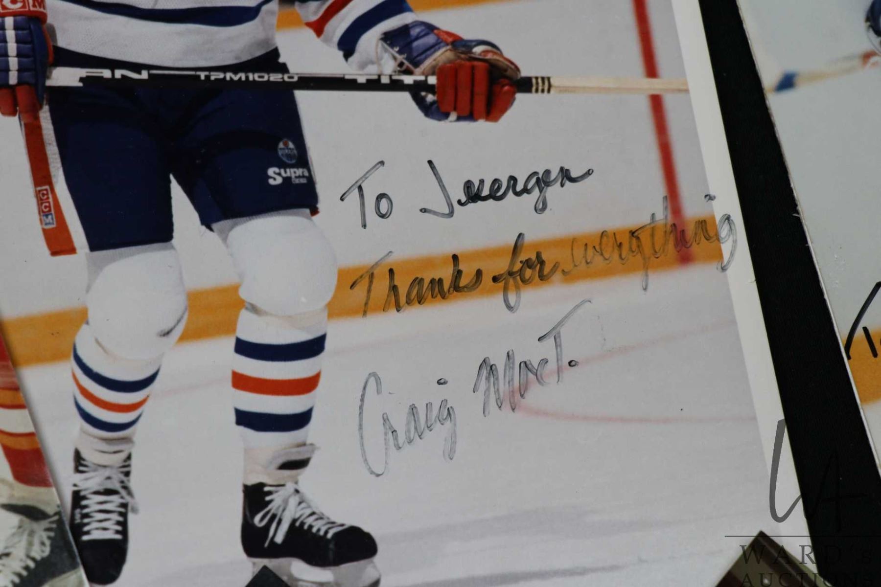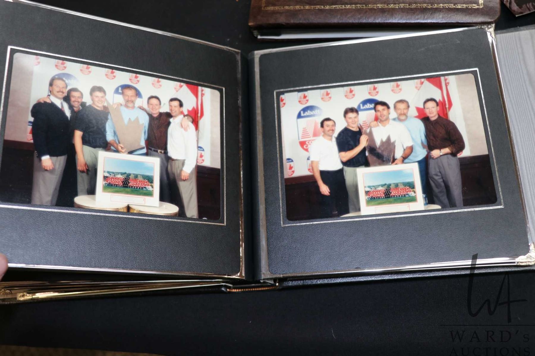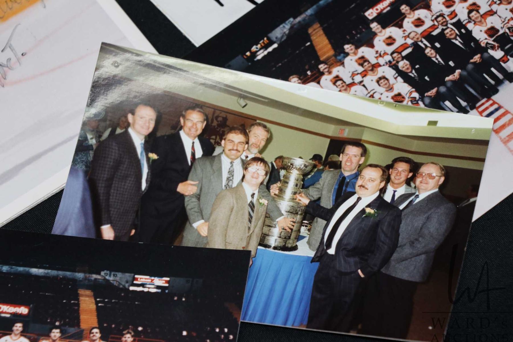Large selection of colour and black and white promo photos, several hand signed including Kevin Lowe, Steve Smith etc. plus two albums of photos from the 1997 and 1991 Canada cup. All from the personal selection of Oiler's masseuse Juergen Merz, circa 1980's.