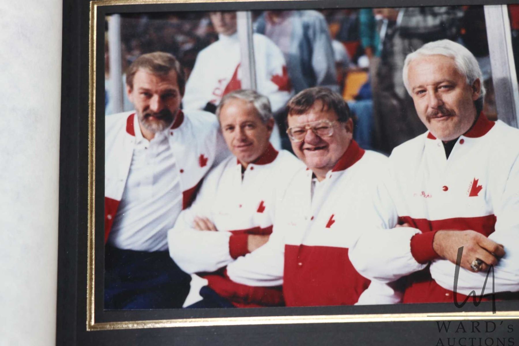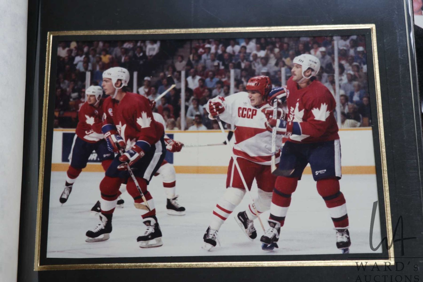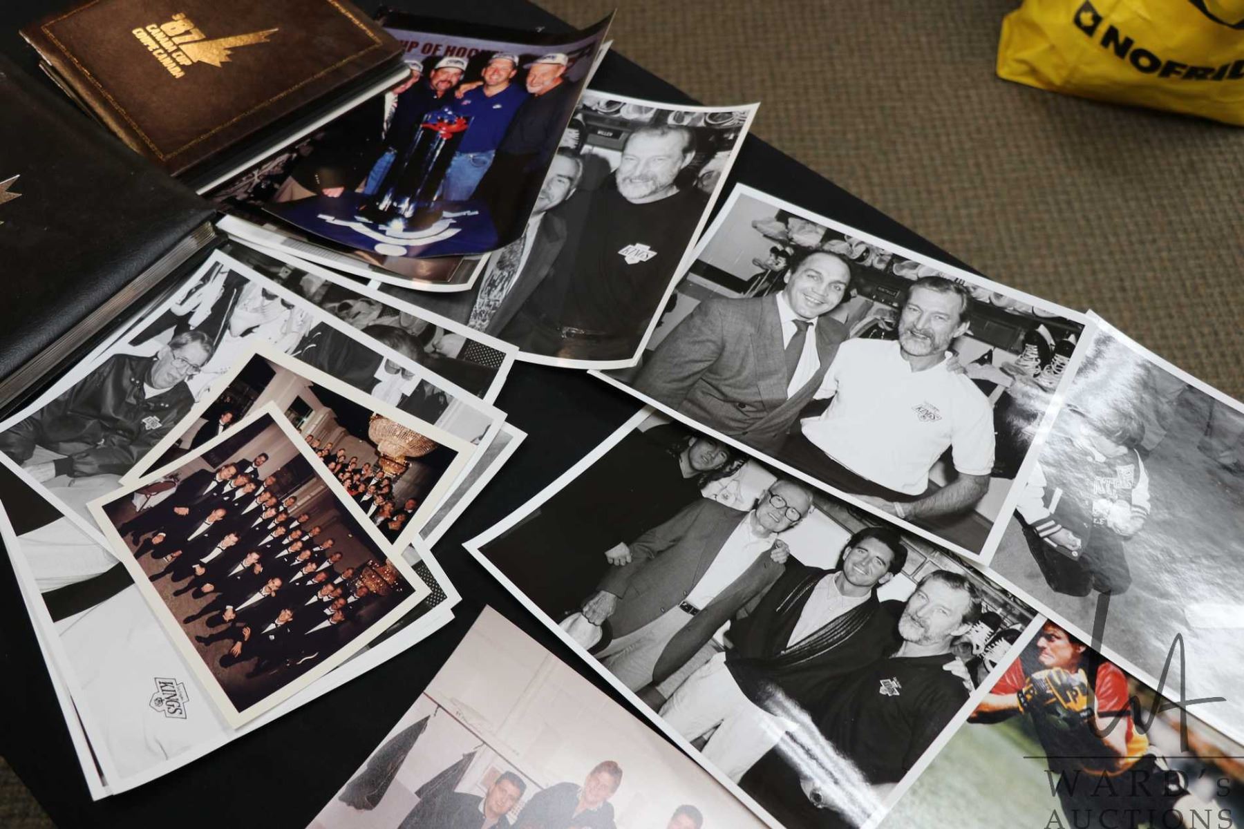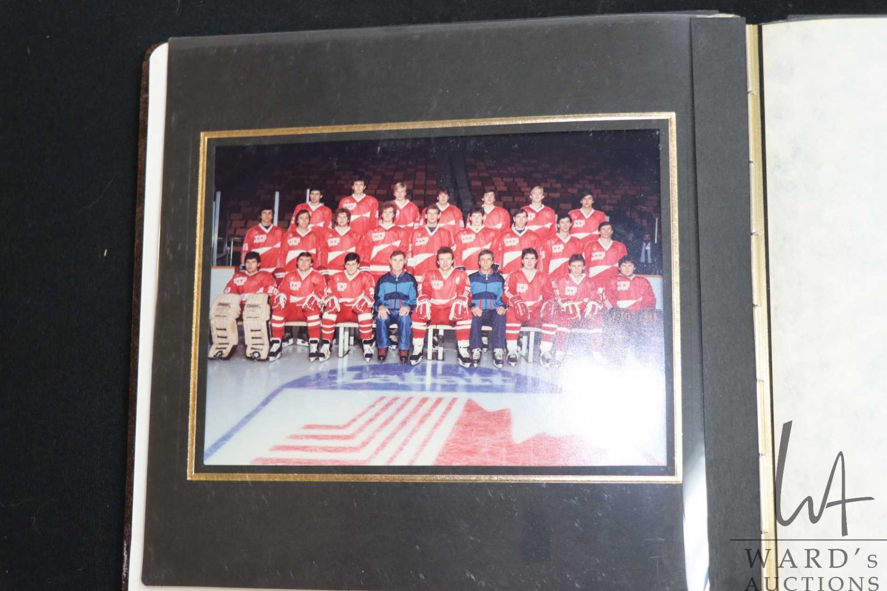 Large selection of colour and black and white promo photos, several hand signed including Kevin Lowe, Steve Smith etc. plus two albums of photos from the 1997 and 1991 Canada cup. All from the personal selection of Oiler's masseuse Juergen Merz, circa 1980's.